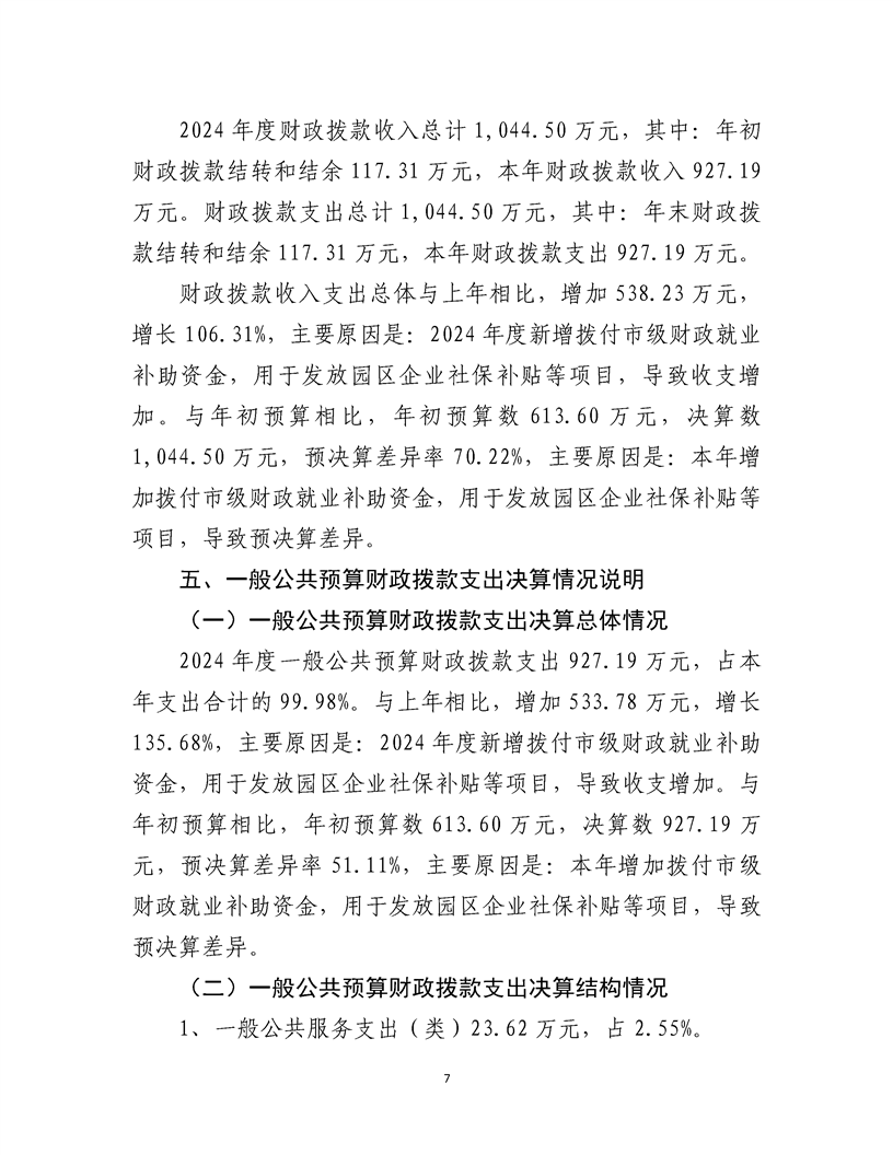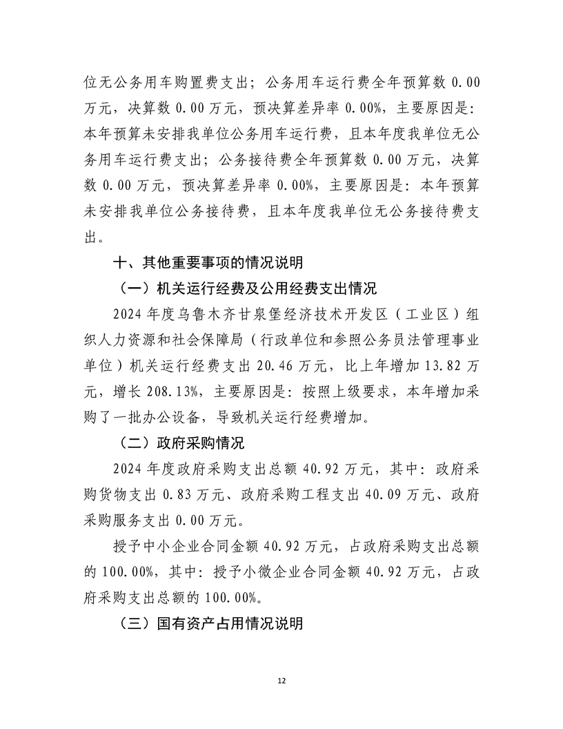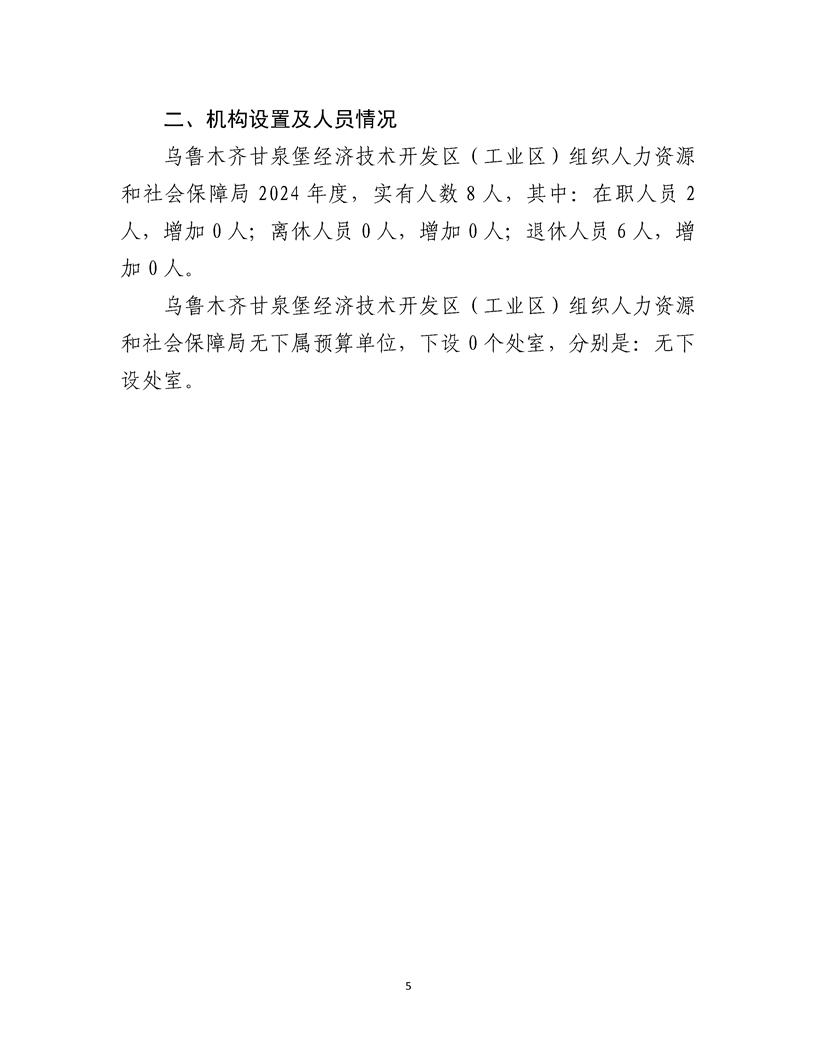 乌鲁木齐甘泉堡经济技术开发区(工业区)组织人力资源和社会保障局2024 年度部门决算公开说明