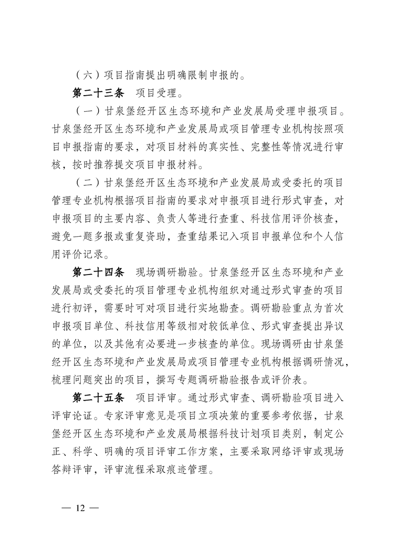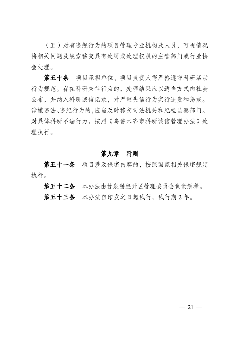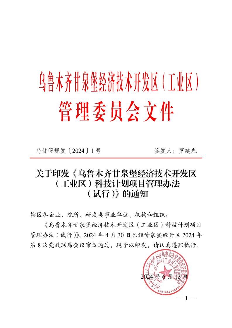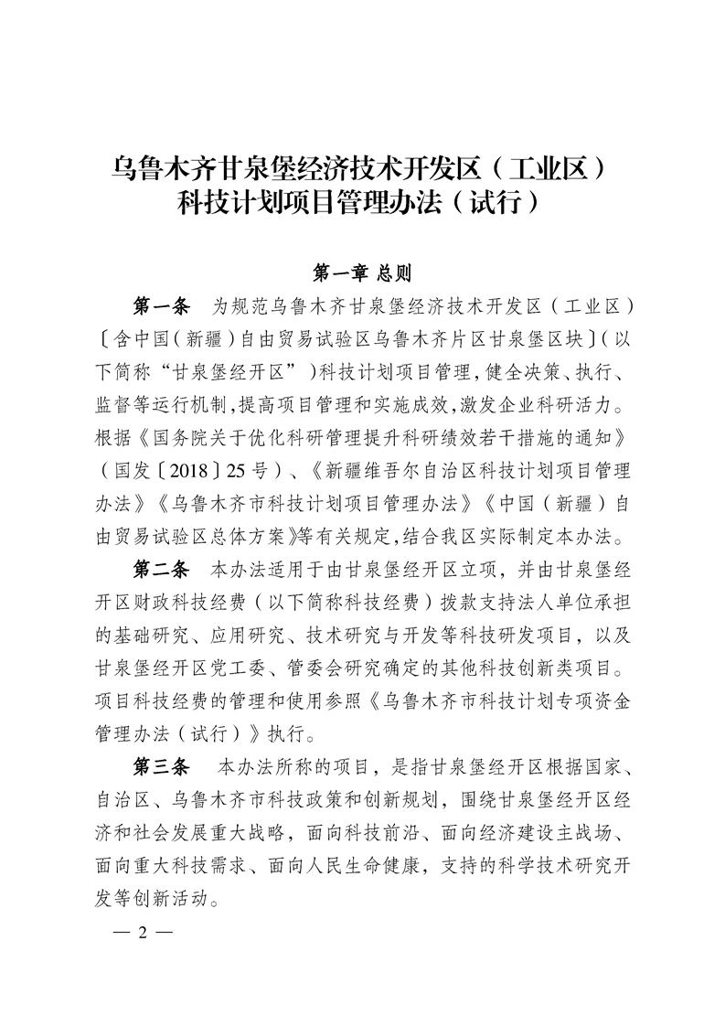 关于印发《乌鲁木齐甘泉堡经济技术开发区(工业区)科技计划项目管理办法(试行)》的通知