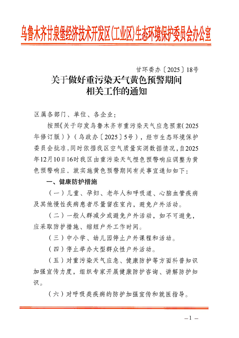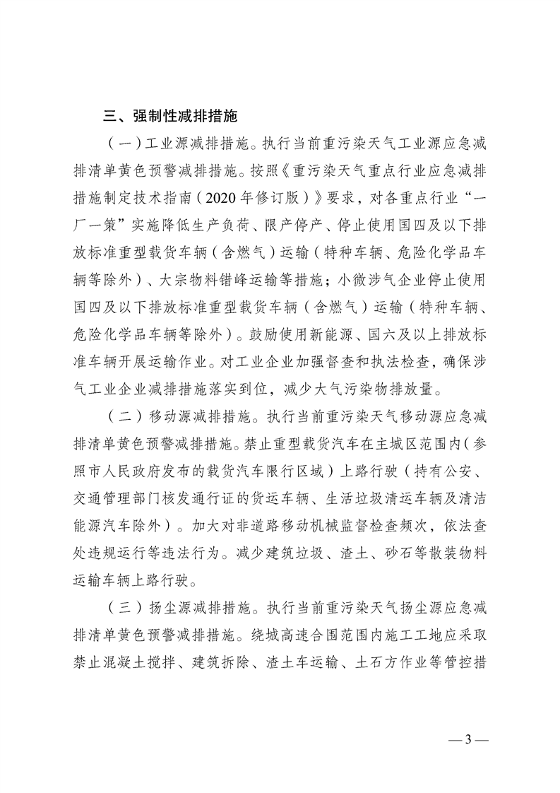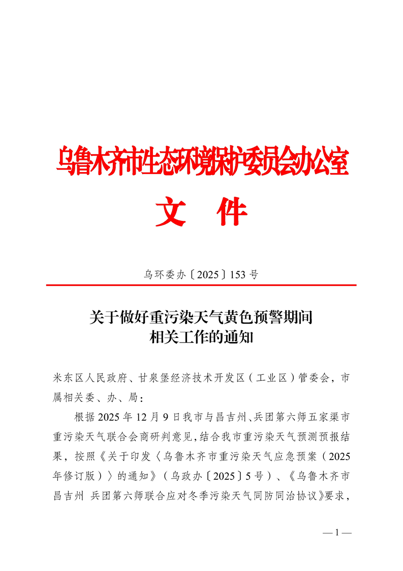 关于做好重污染天气黄色预警期间相关工作的通知