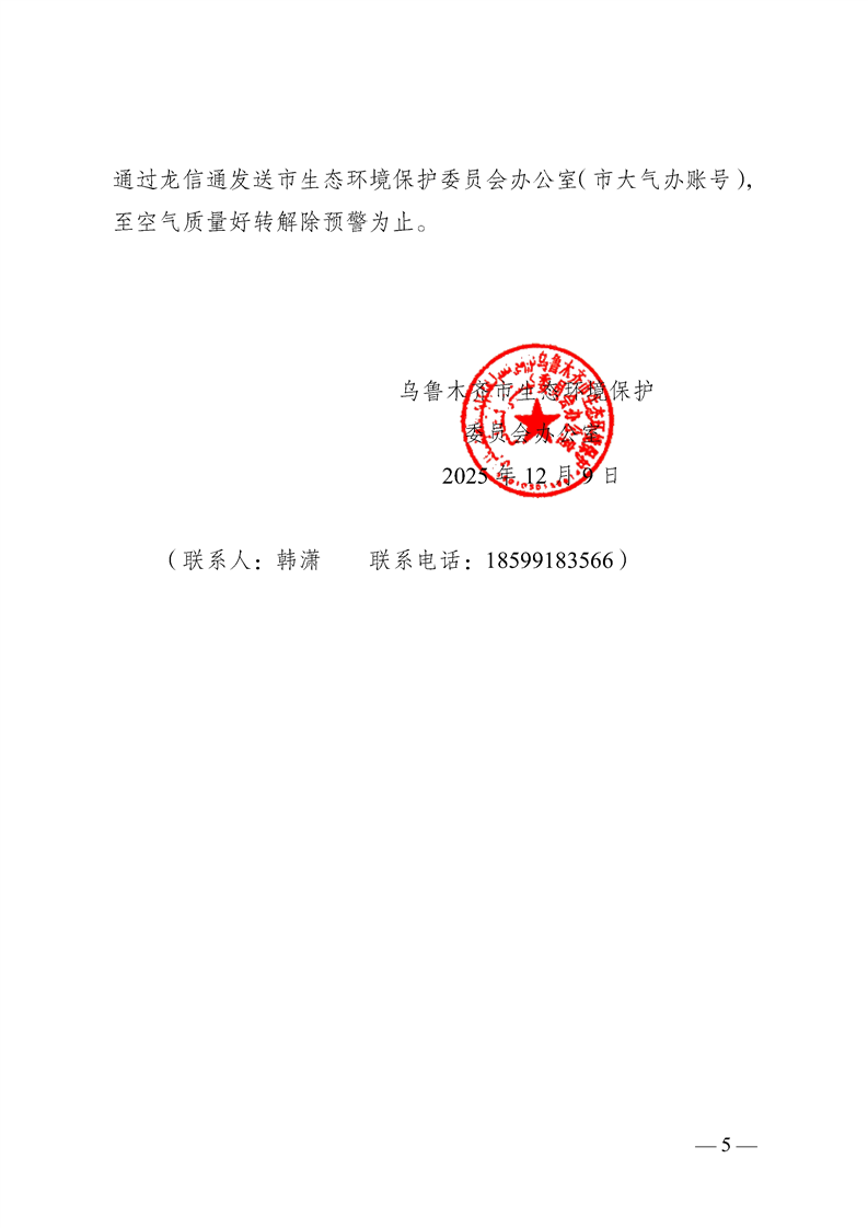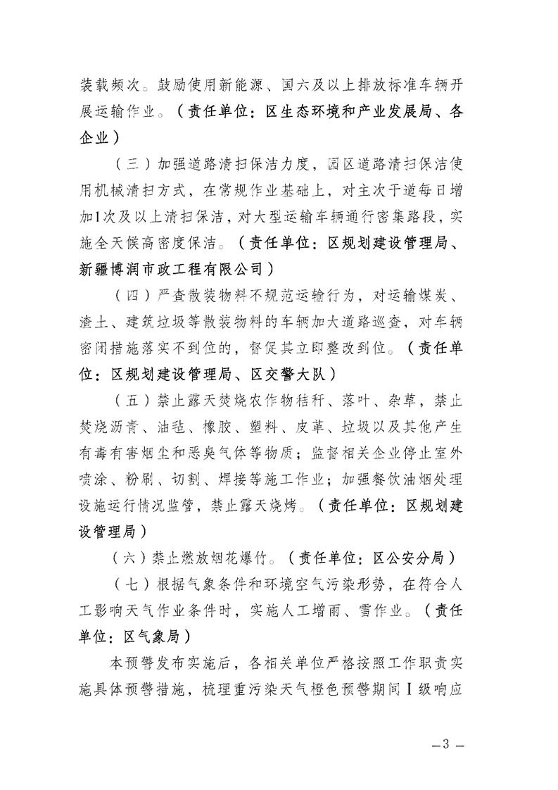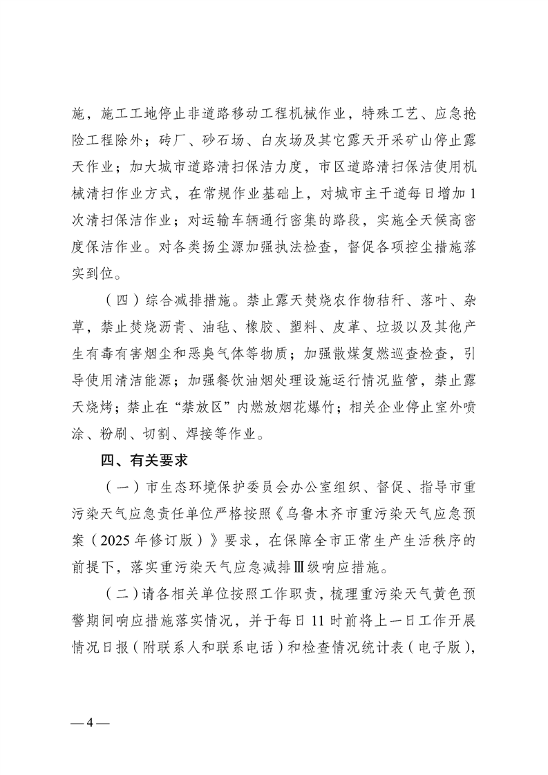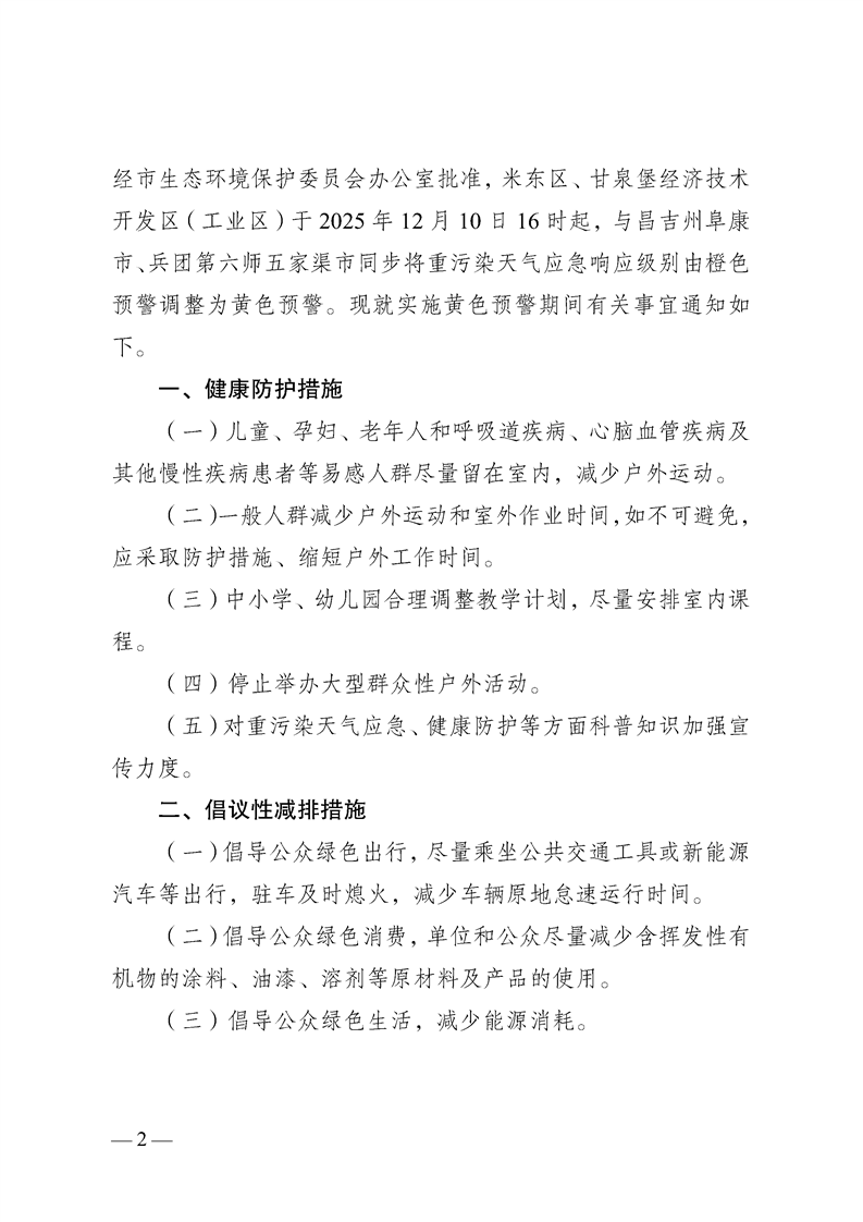 关于做好重污染天气黄色预警期间相关工作的通知
