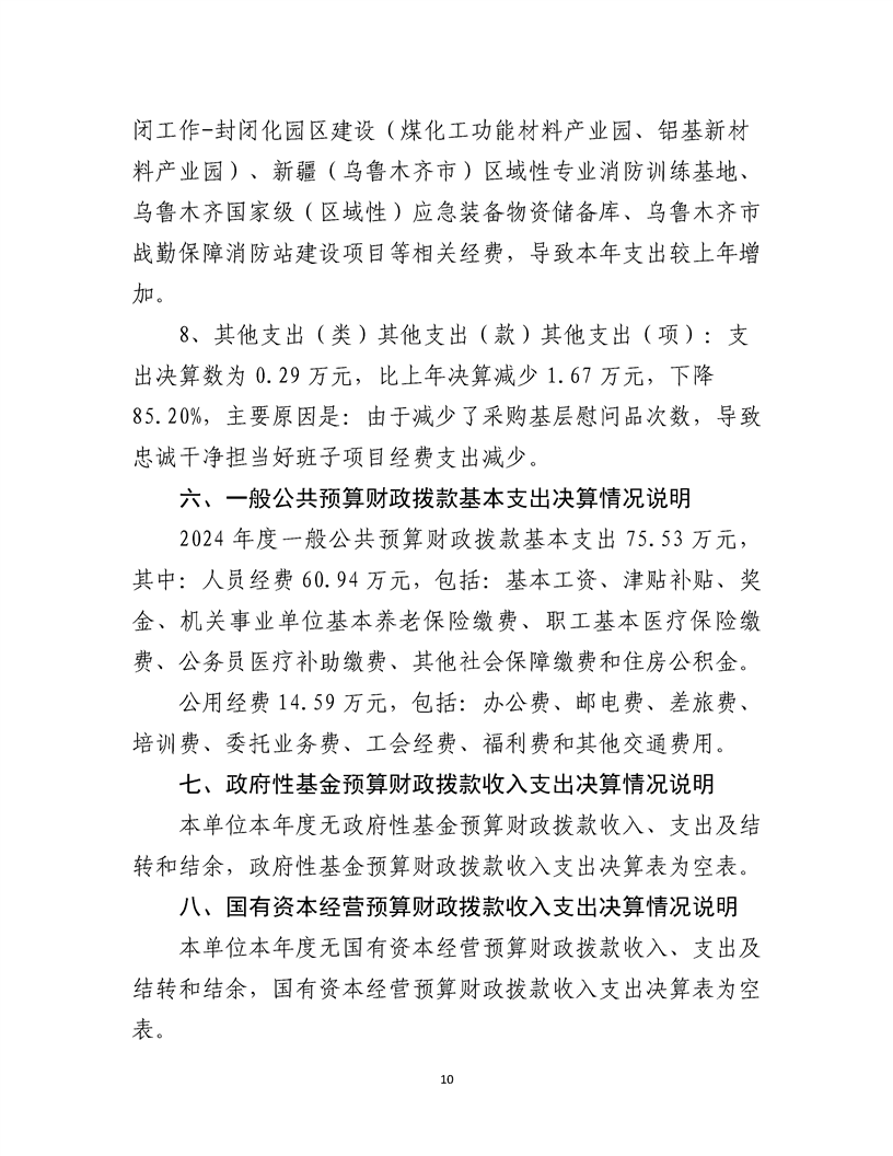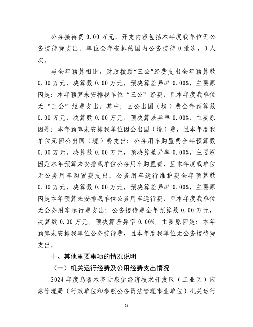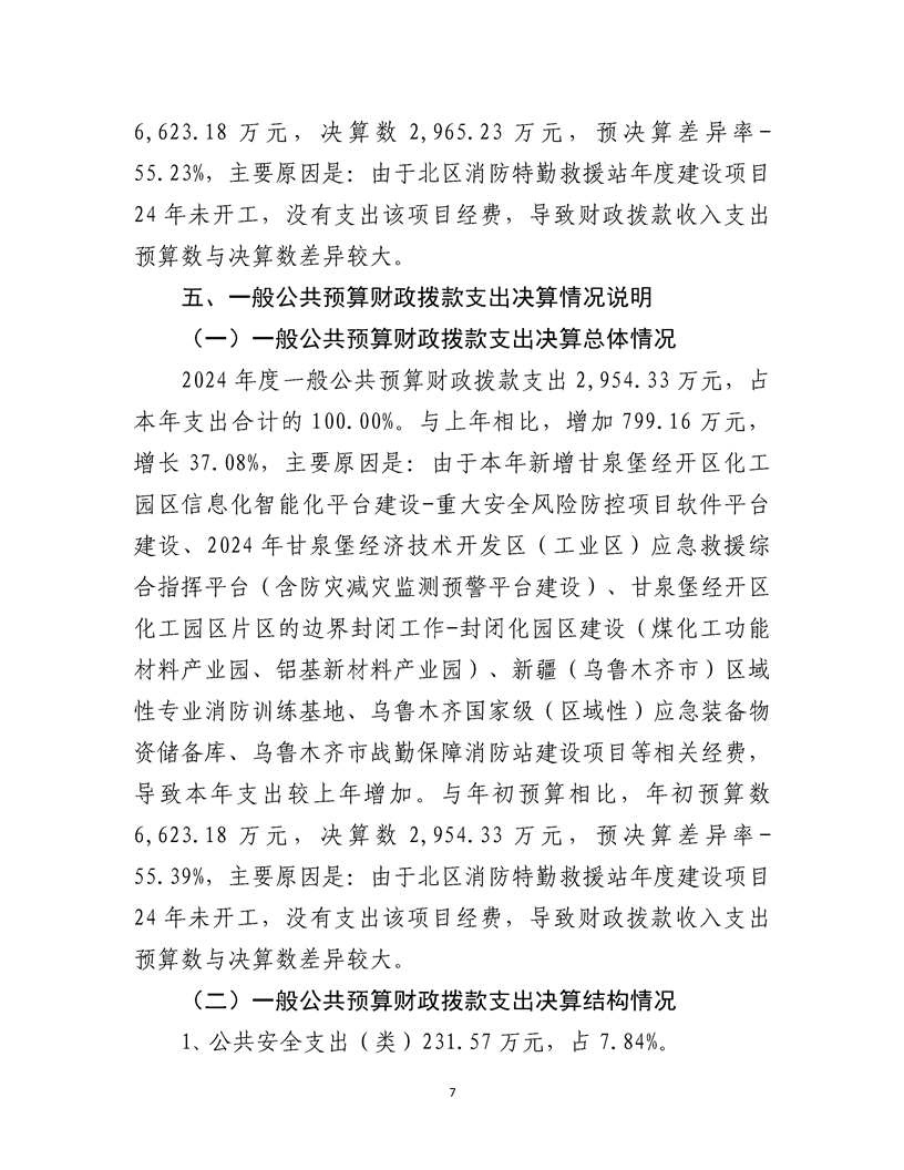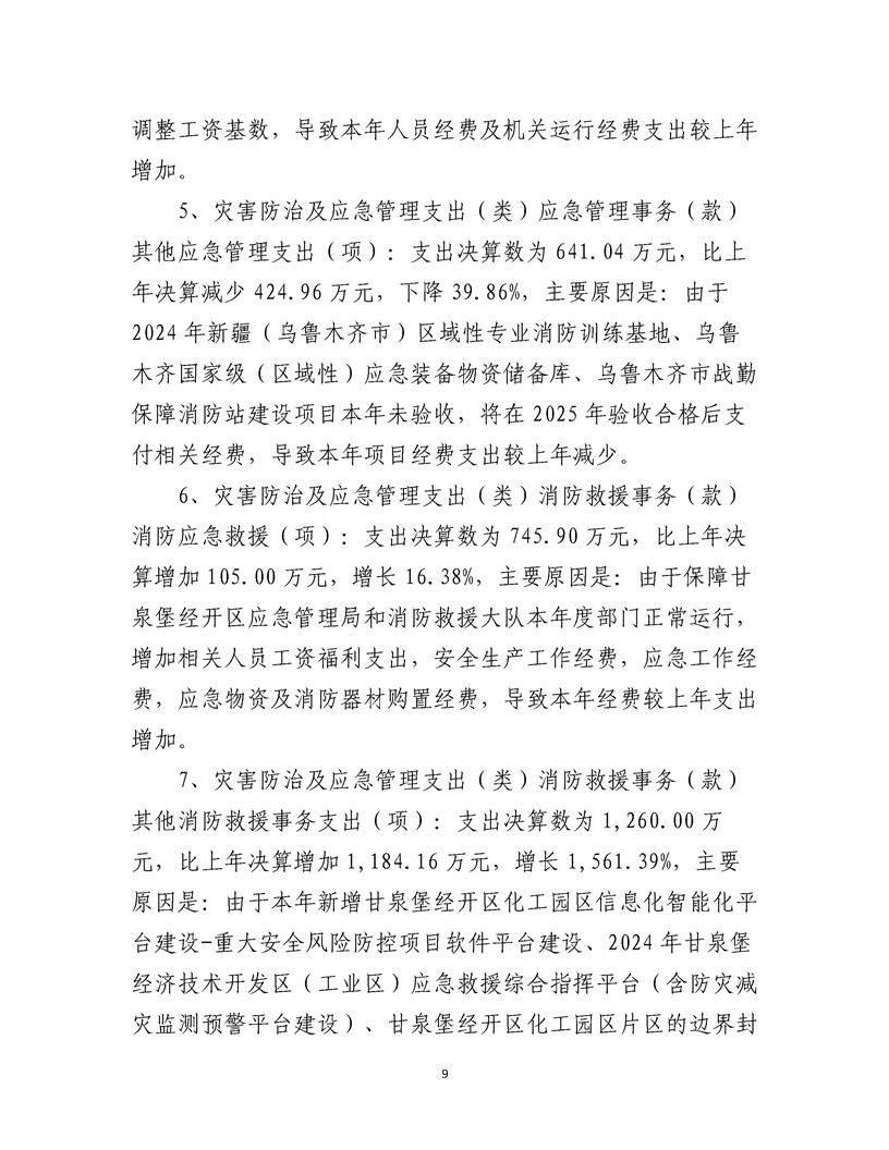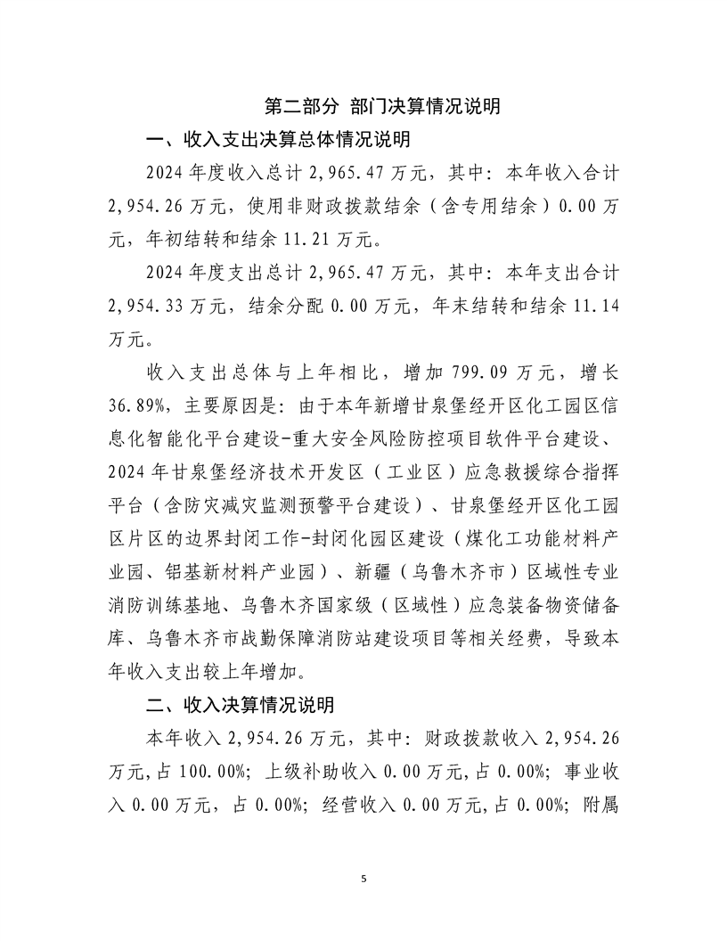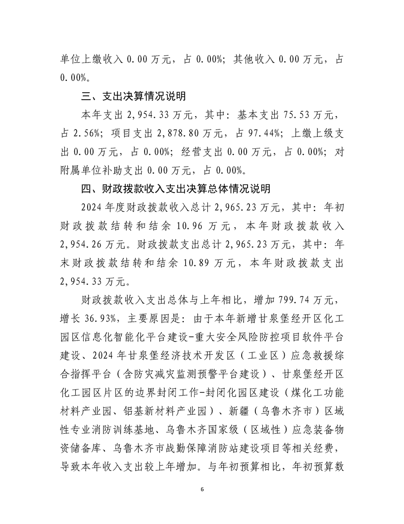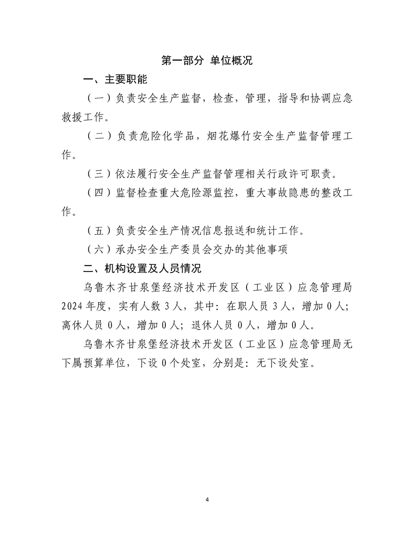乌鲁木齐甘泉堡经济技术开发区(工业区)应急管理局2024 年度部门决算公开说明