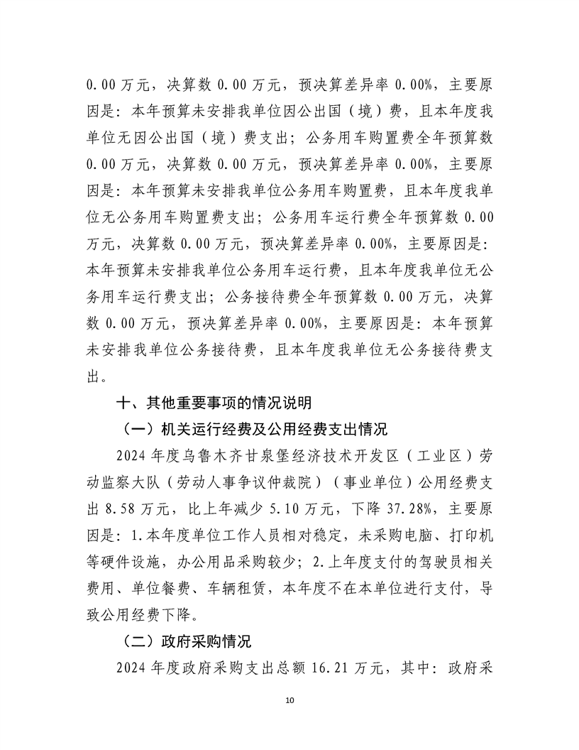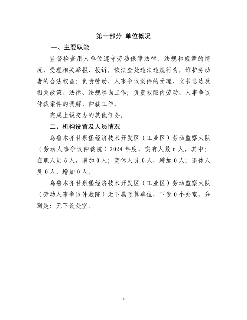 乌鲁木齐甘泉堡经济技术开发区(工业区)劳动监察大队(劳动人事争议仲裁院)2024 年度部门决算公开说明