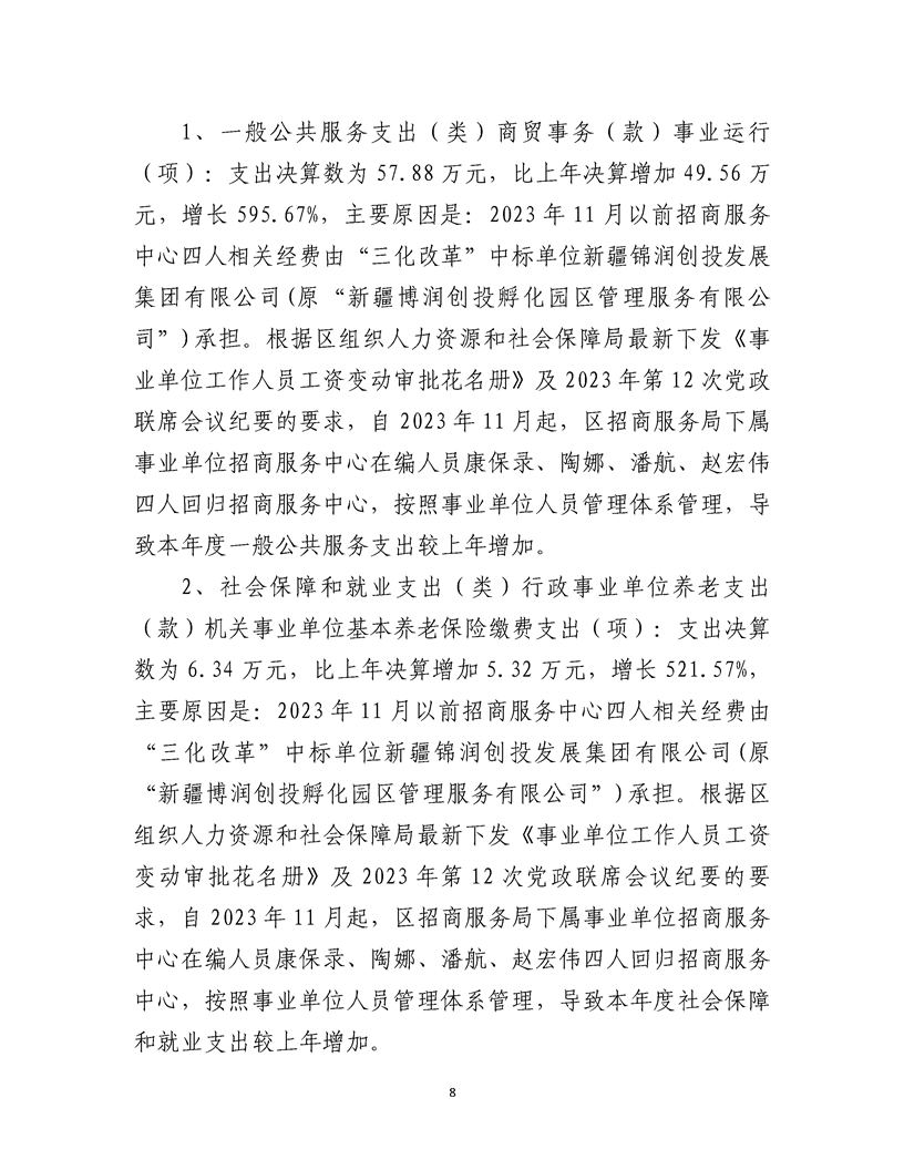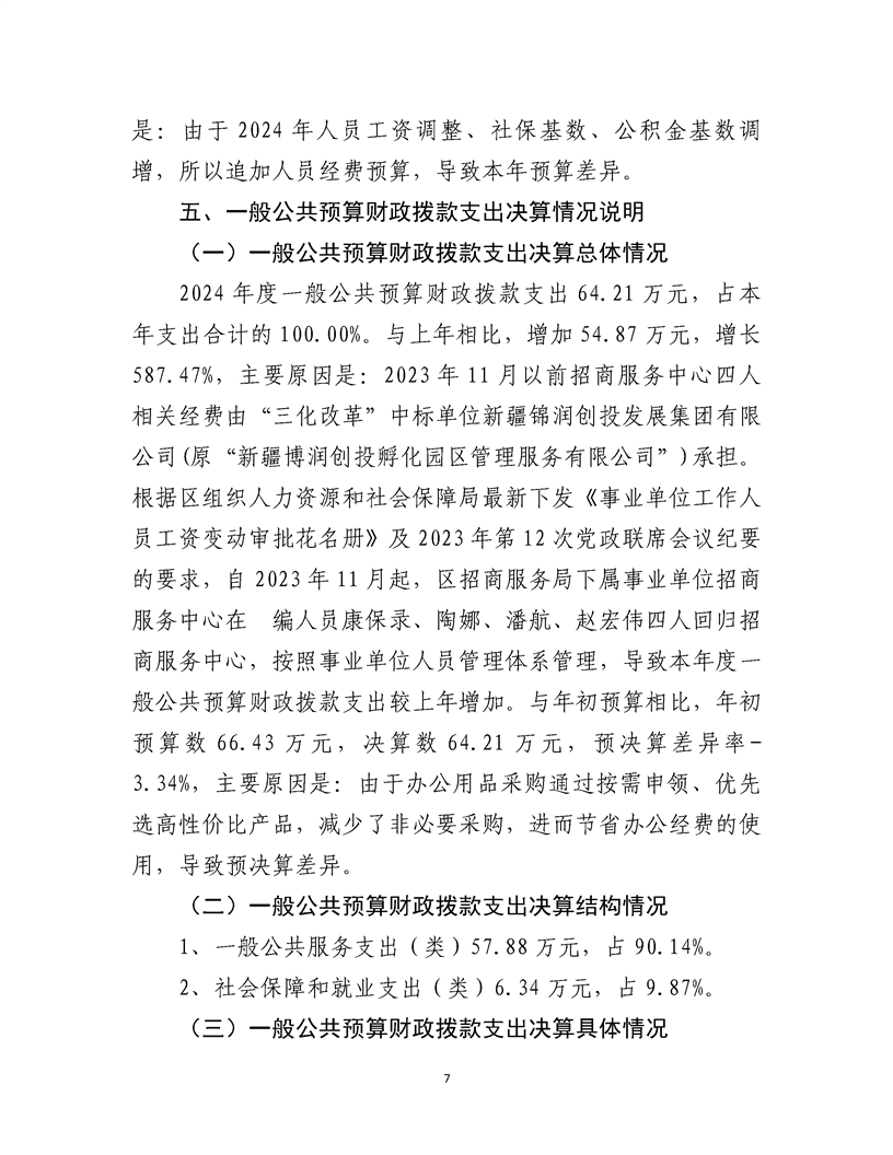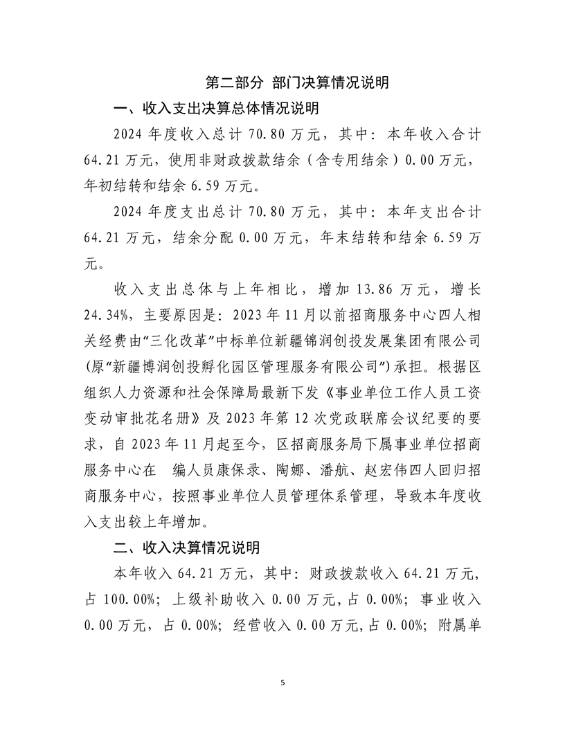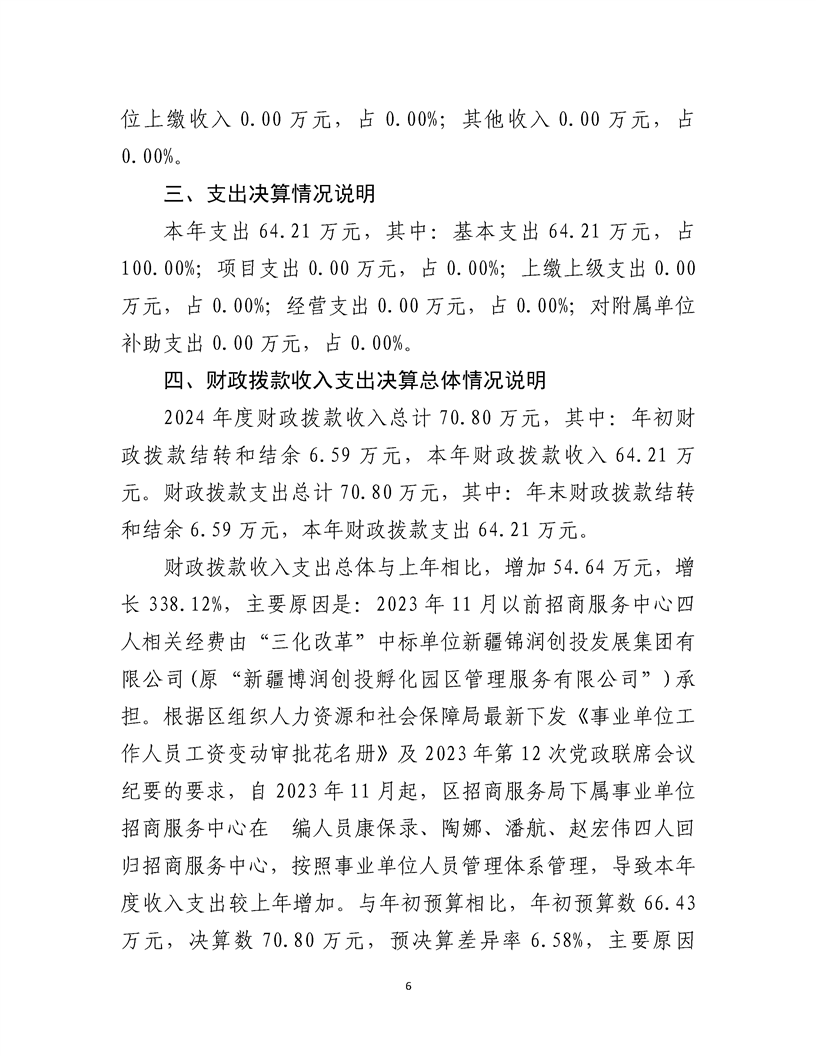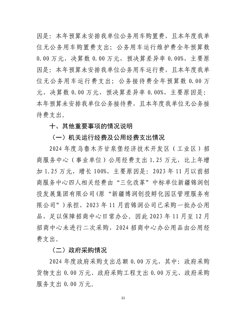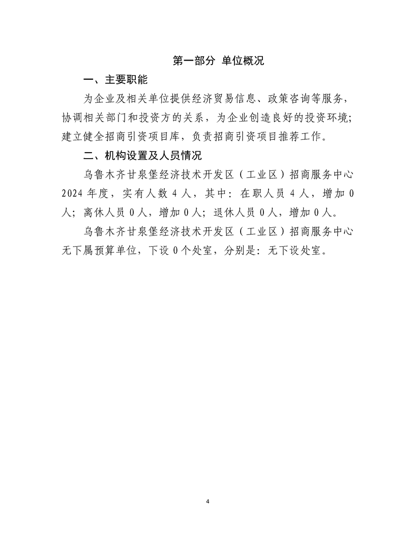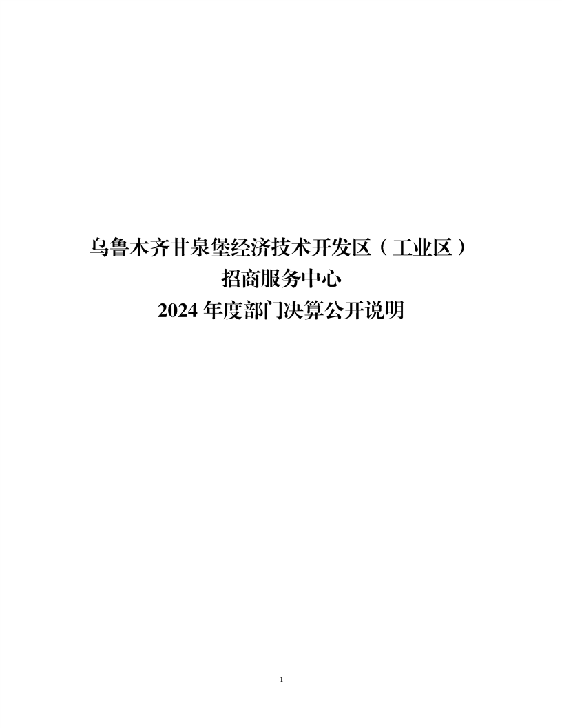 乌鲁木齐甘泉堡经济技术开发区(工业区)招商服务中心2024 年度部门决算公开说明