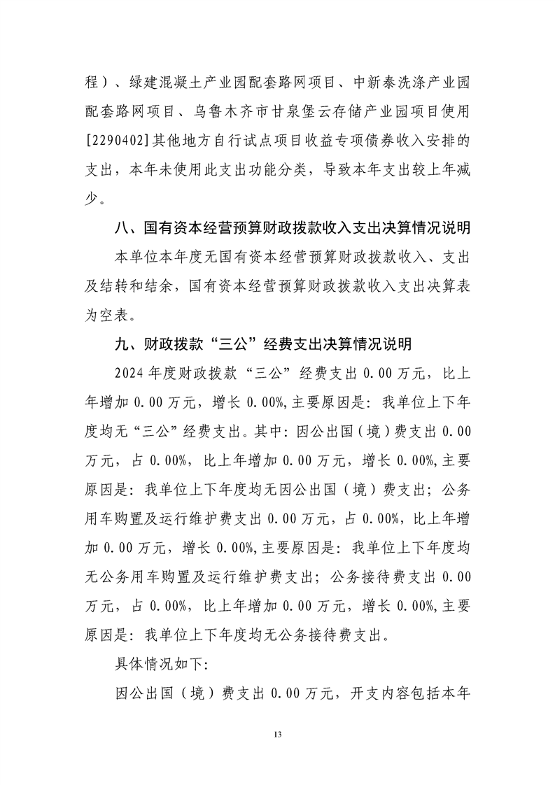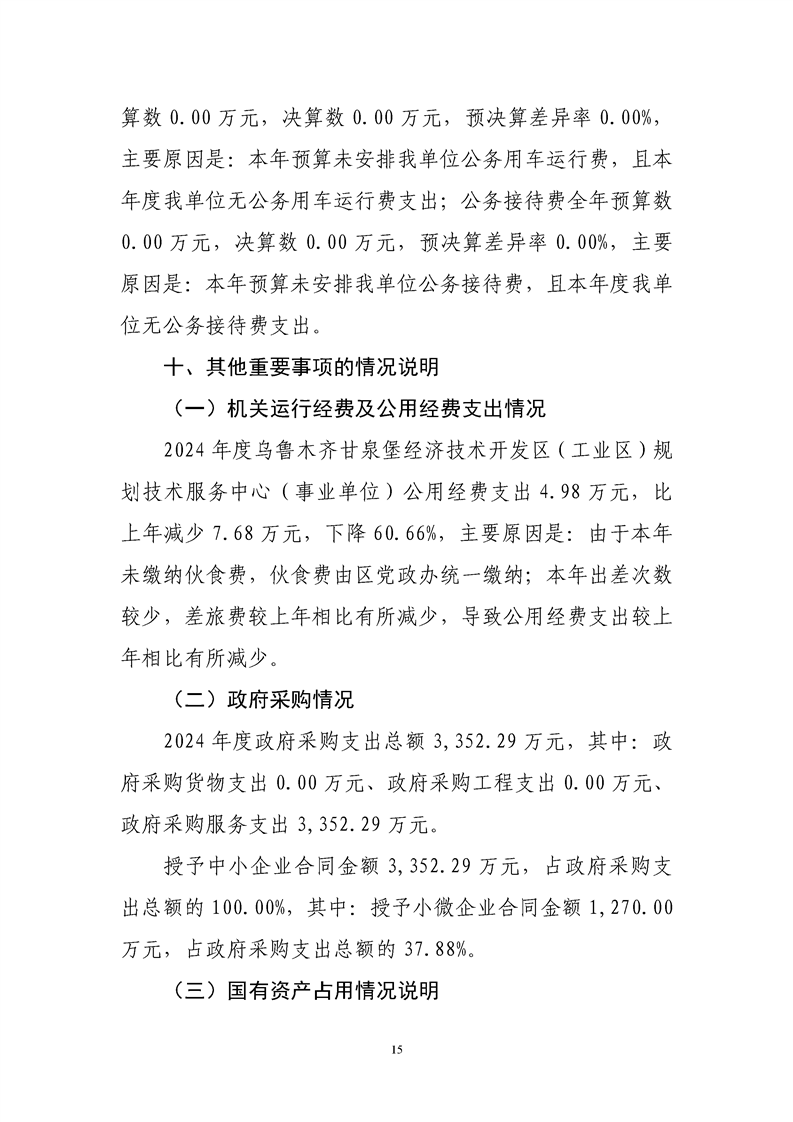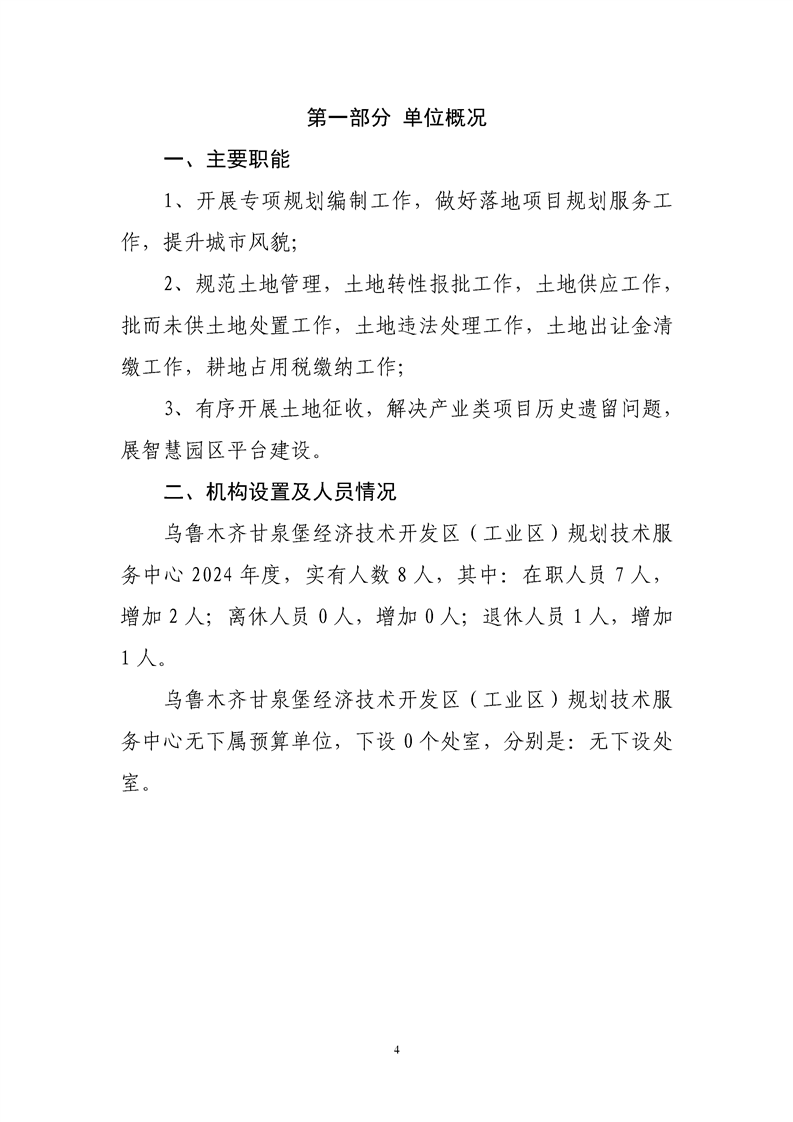 乌鲁木齐甘泉堡经济技术开发区(工业区)规划技术服务中心2024 年度部门决算公开说明