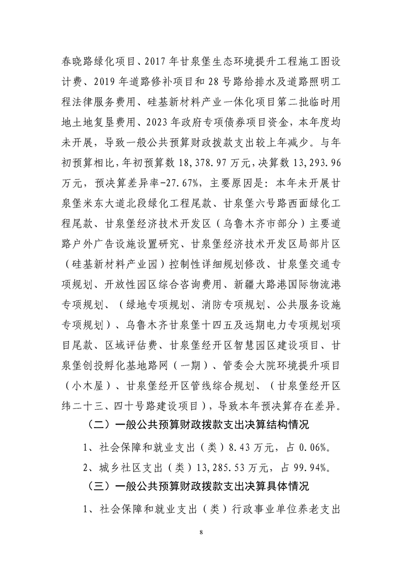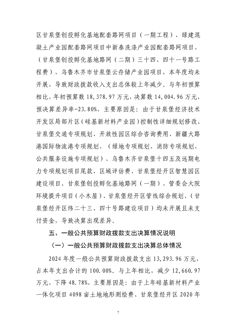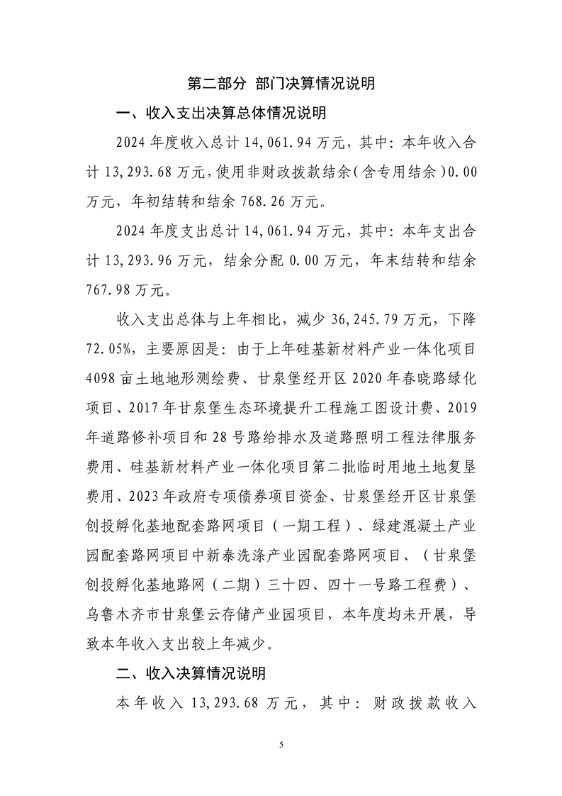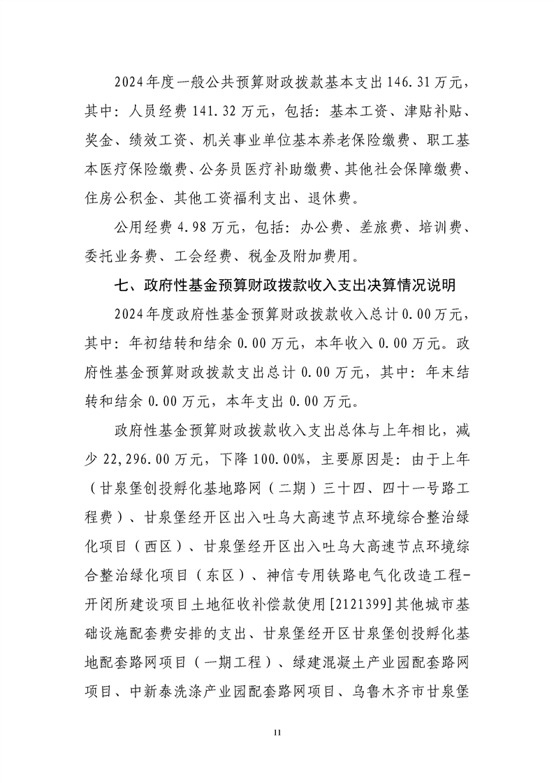 乌鲁木齐甘泉堡经济技术开发区(工业区)规划技术服务中心2024 年度部门决算公开说明