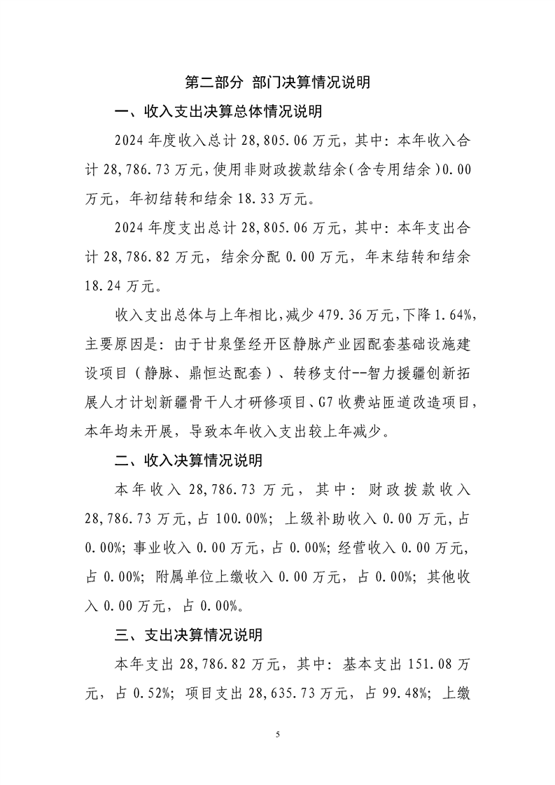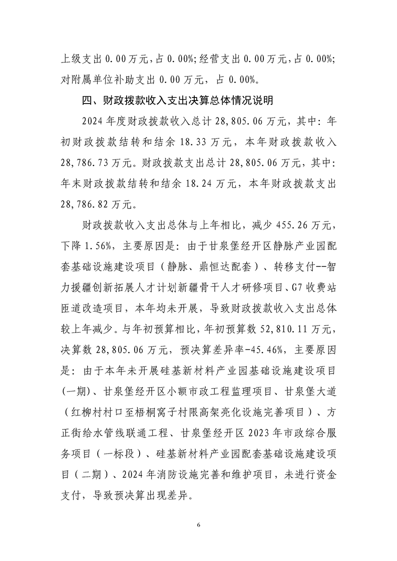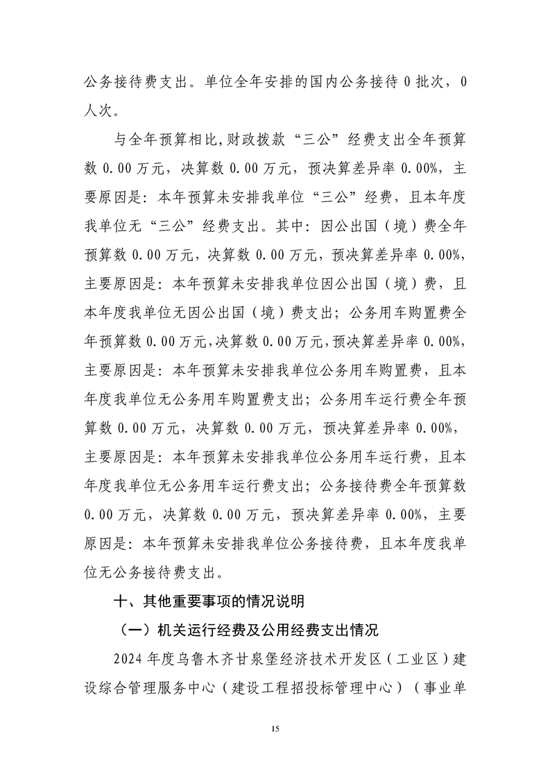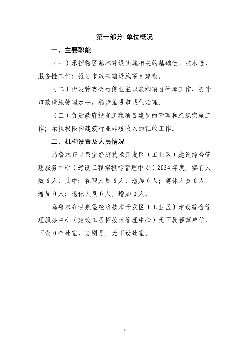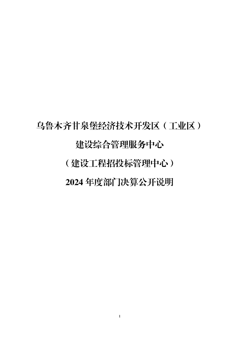乌鲁木齐甘泉堡经济技术开发区(工业区) 建设综合管理服务中心 (建设工程招投标管理中心)2024 年度部门决算公开说明