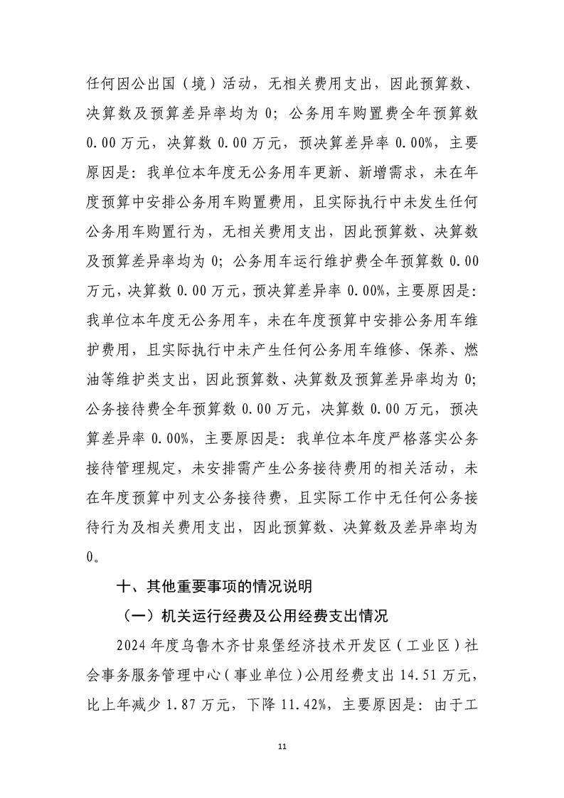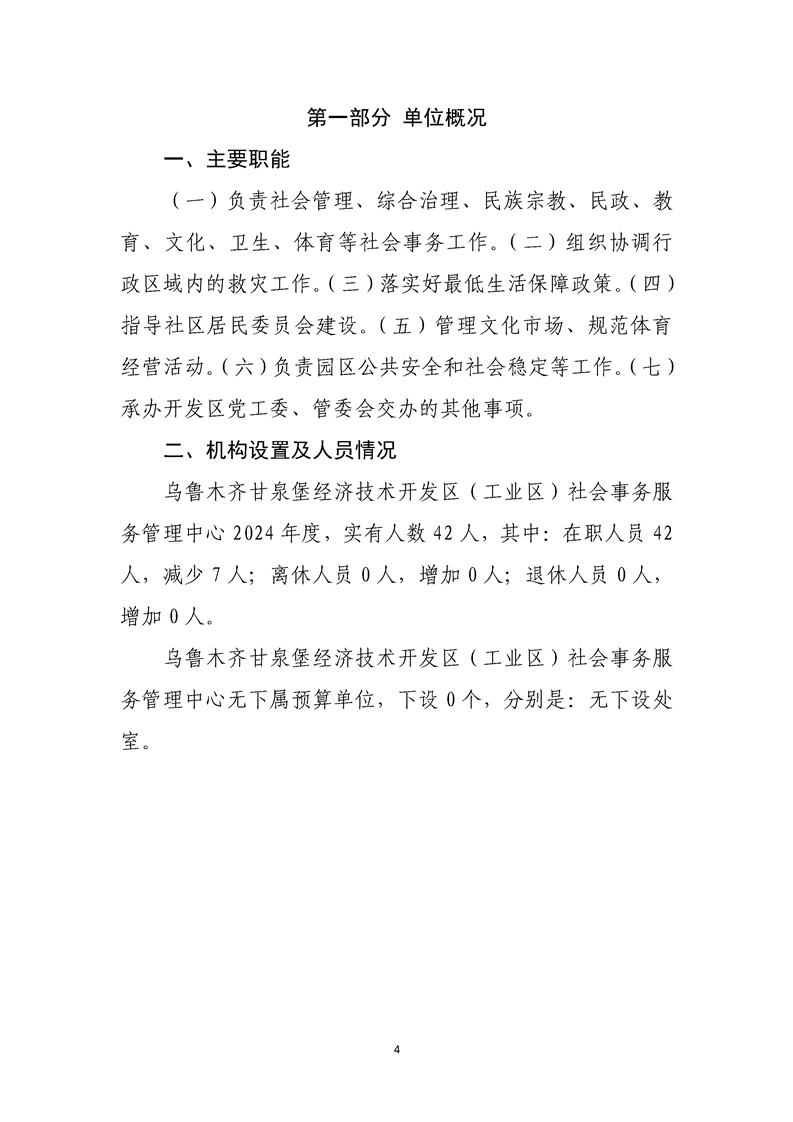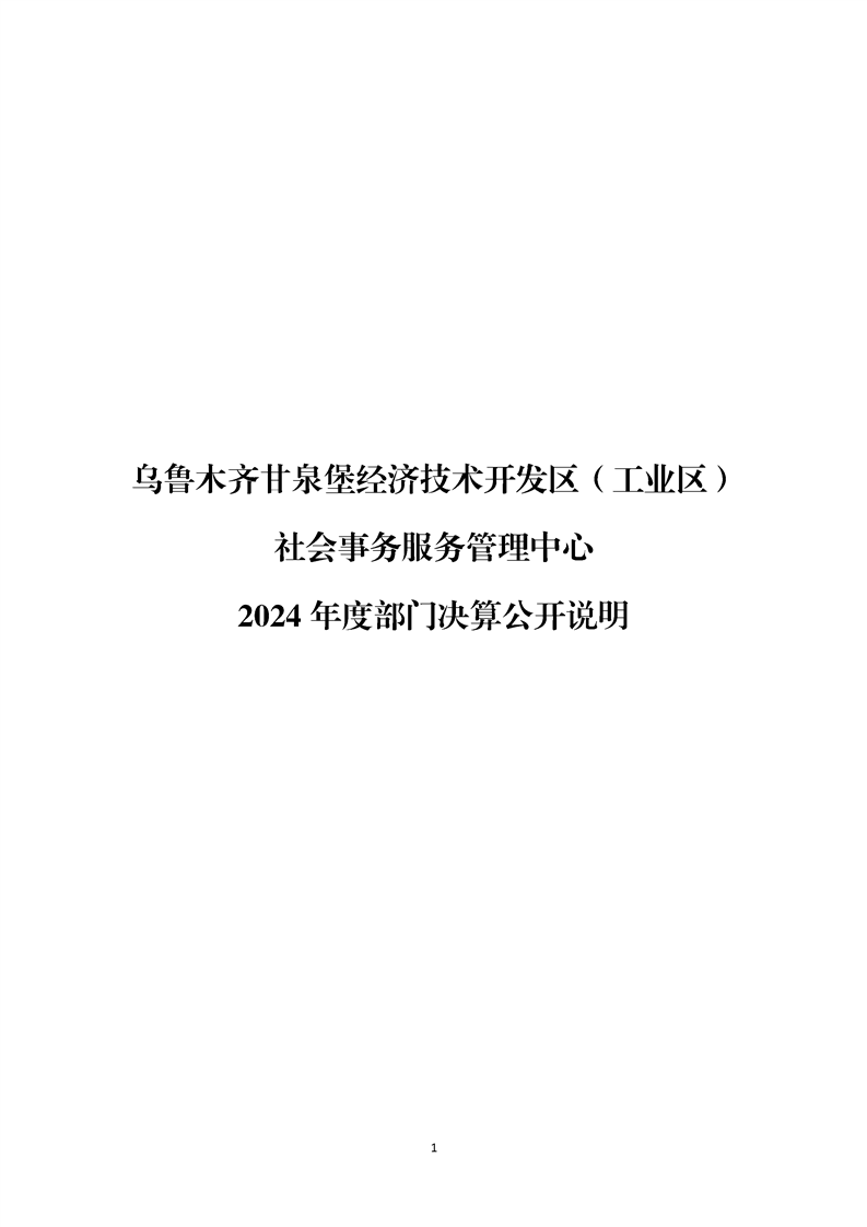 乌鲁木齐甘泉堡经济技术开发区(工业区)社会事务服务管理中心2024 年度部门决算公开说明