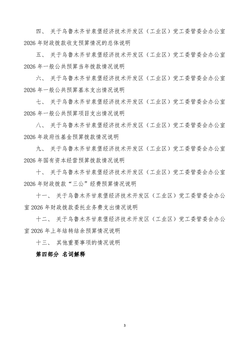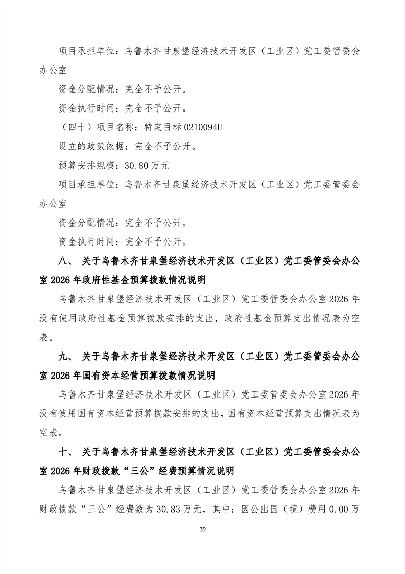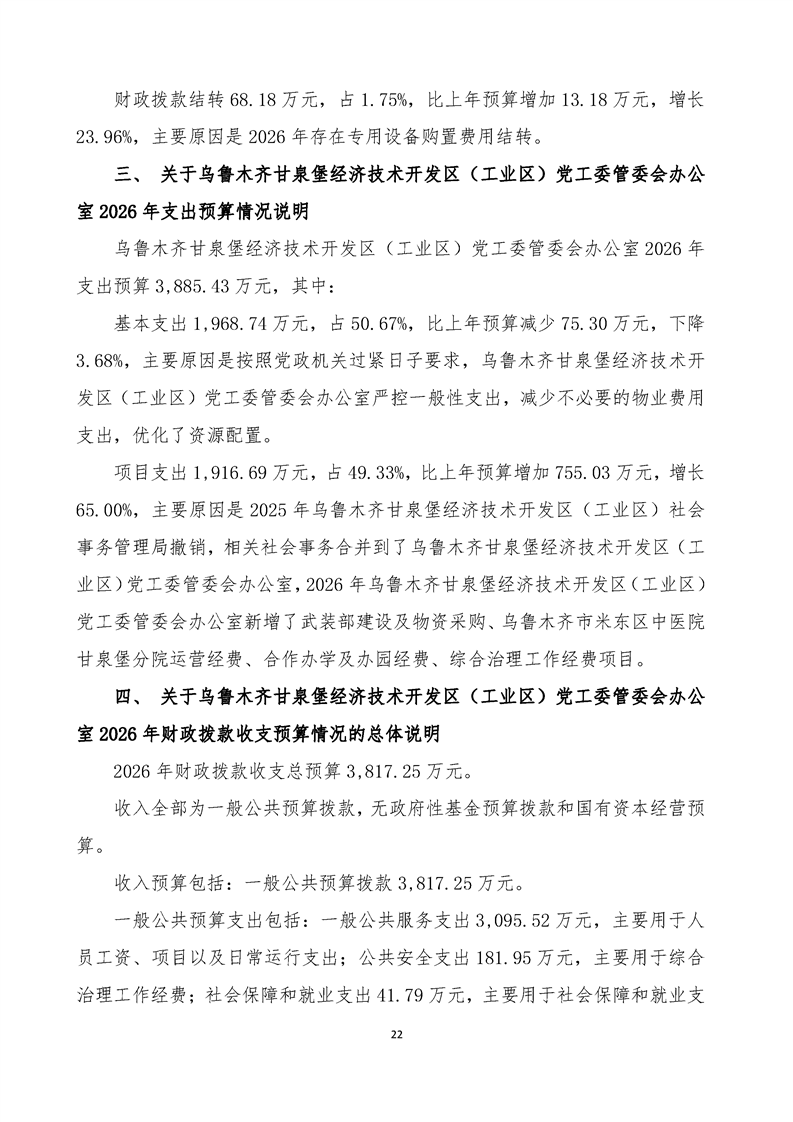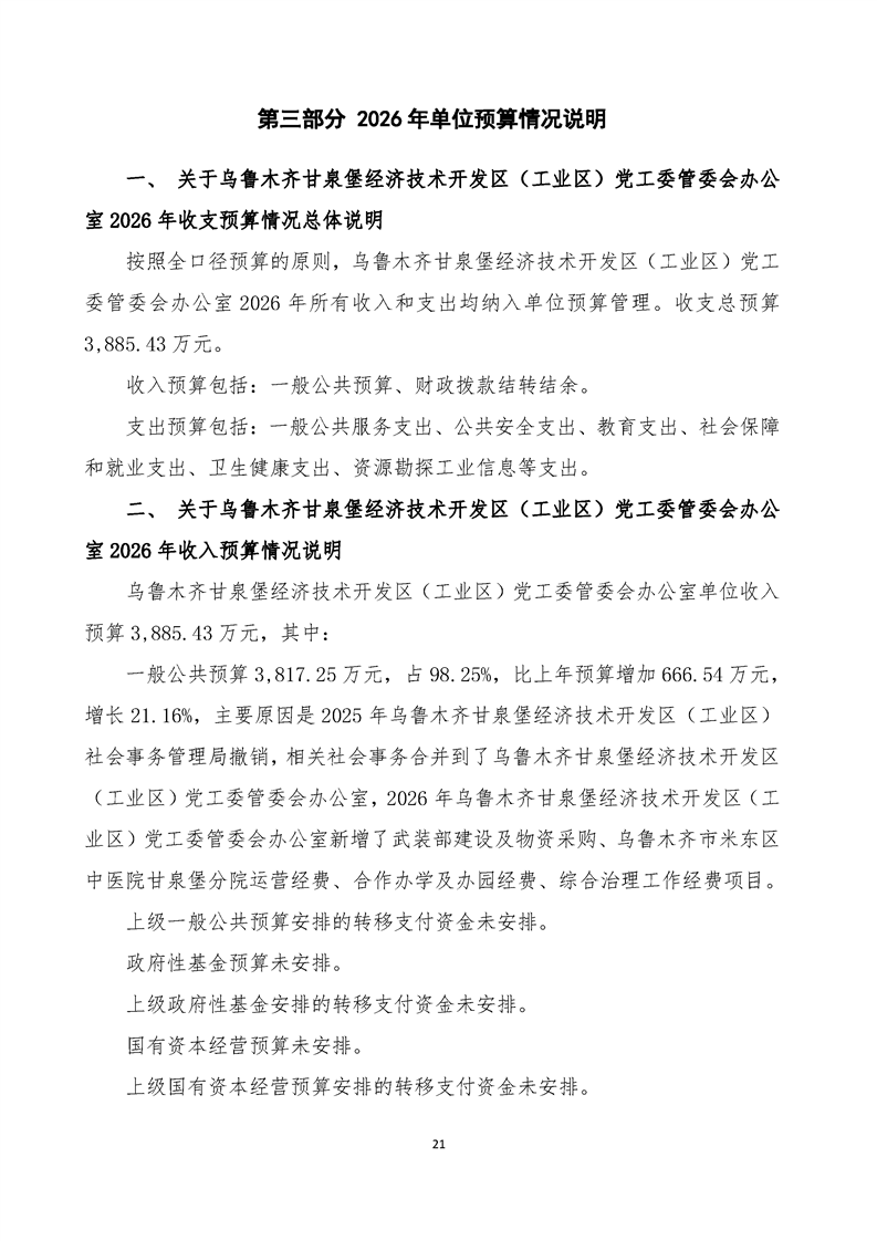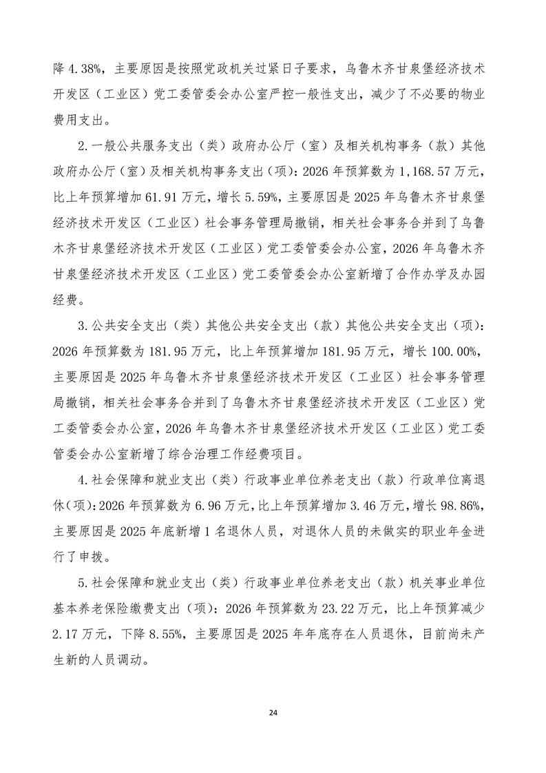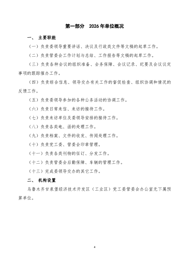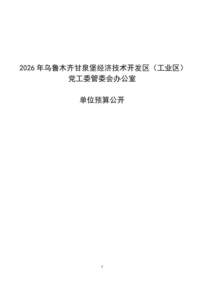 乌鲁木齐甘泉堡经济技术开发区(工业区)党工委管委会办公室2026年单位预算公开