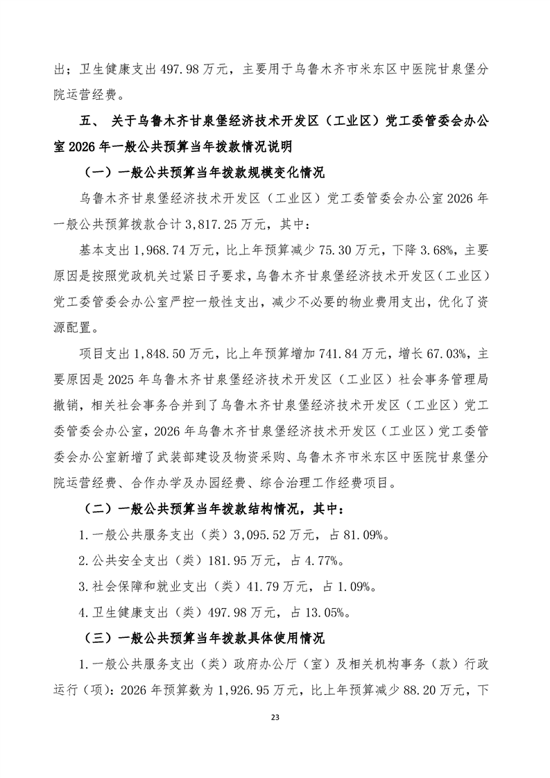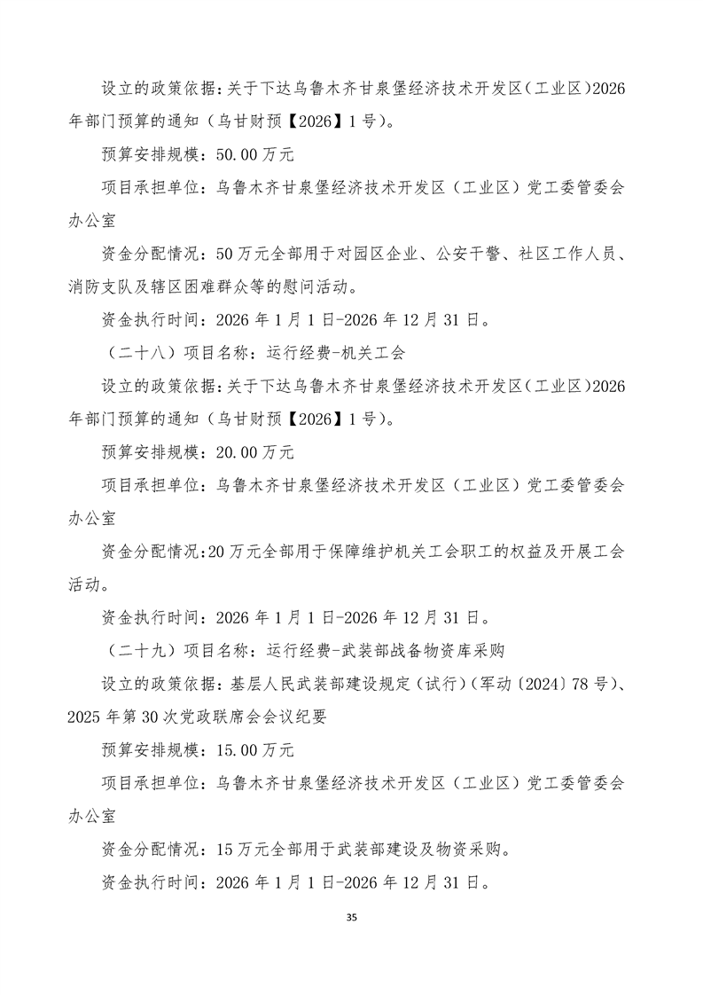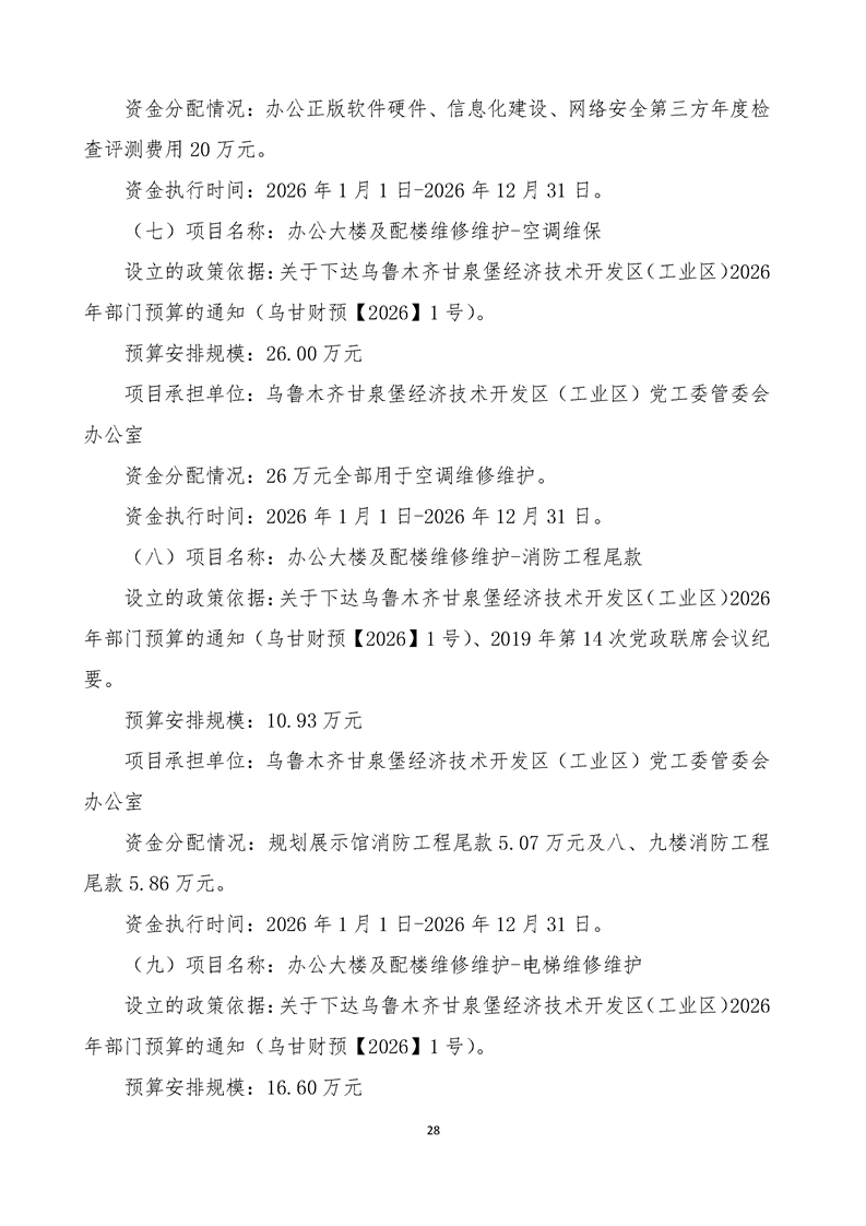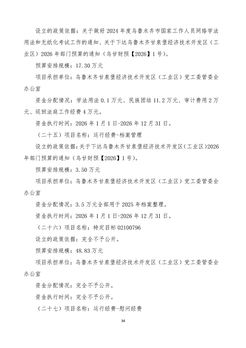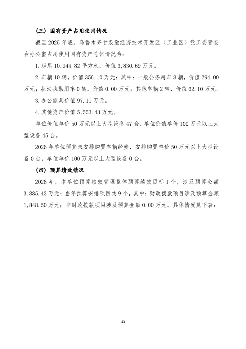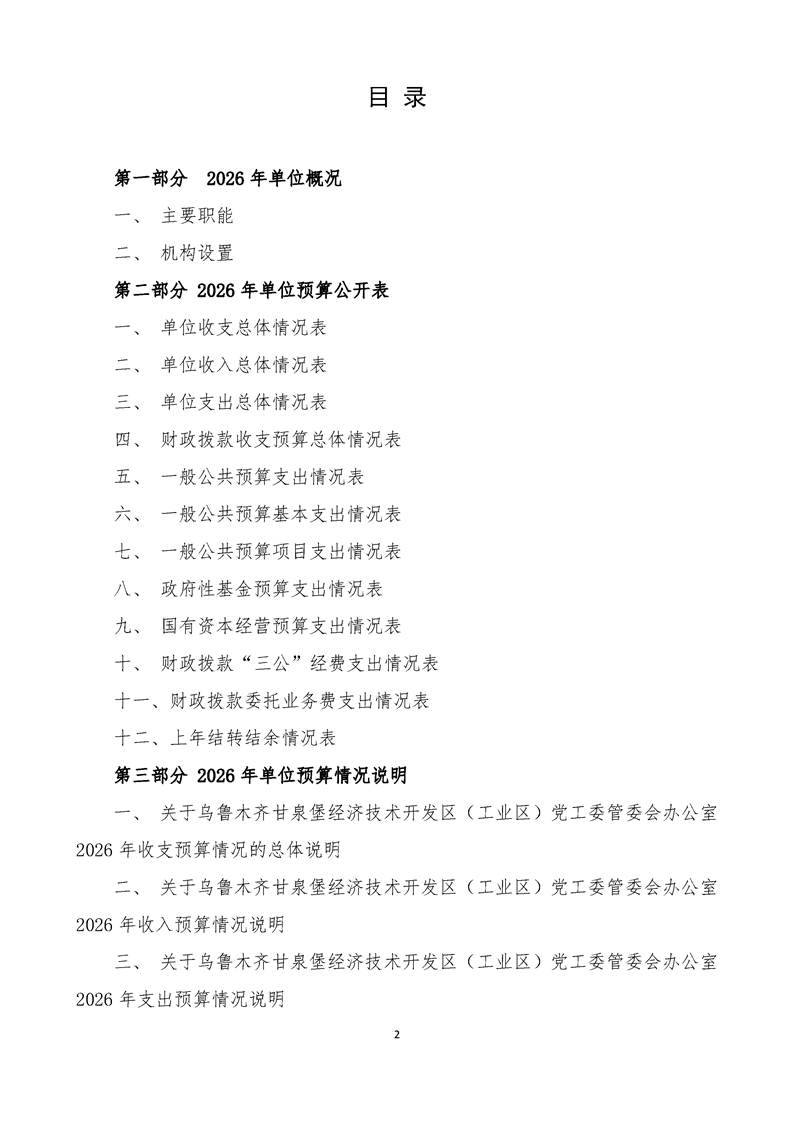 乌鲁木齐甘泉堡经济技术开发区(工业区)党工委管委会办公室2026年单位预算公开