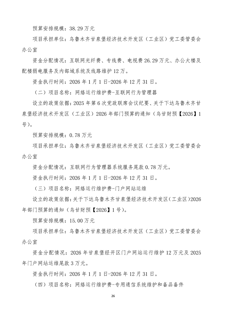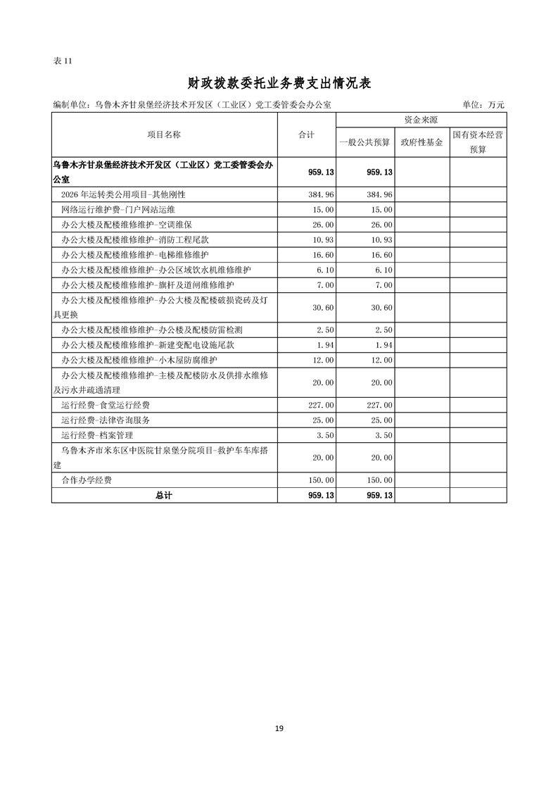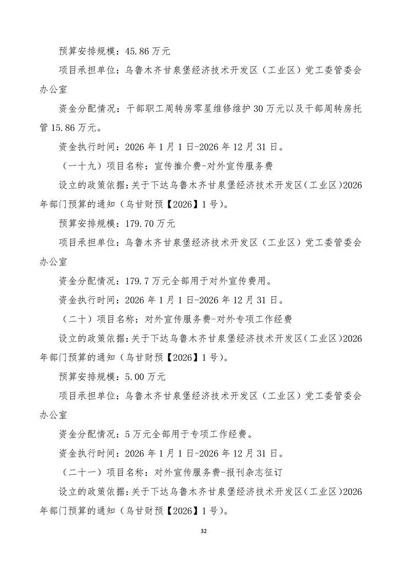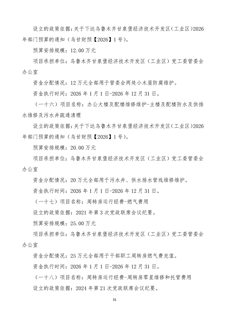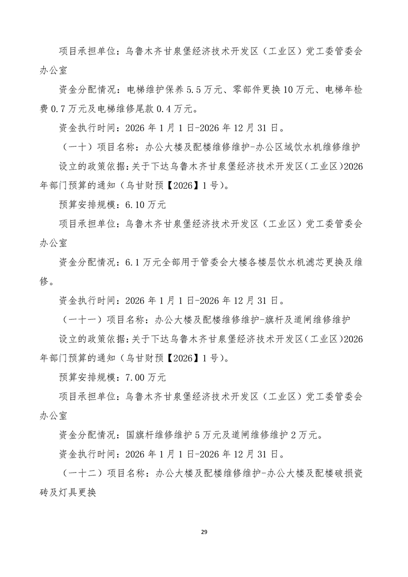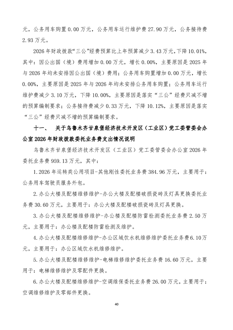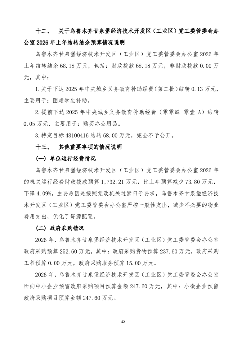 乌鲁木齐甘泉堡经济技术开发区(工业区)党工委管委会办公室2026年单位预算公开