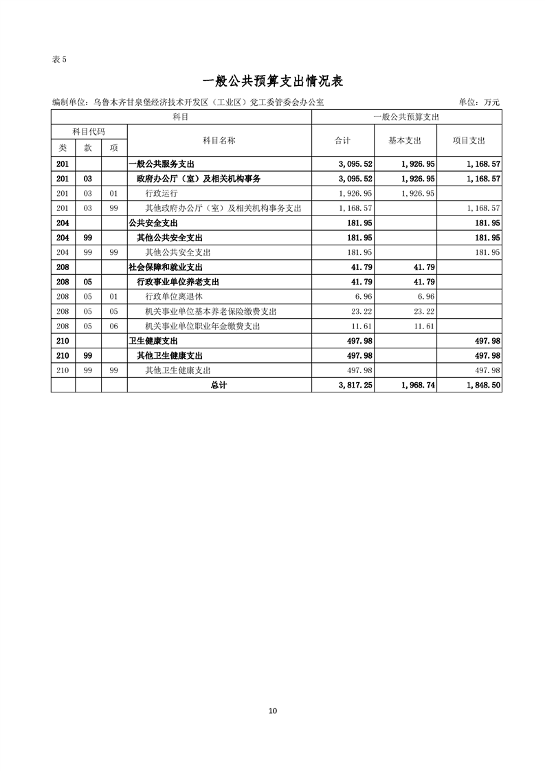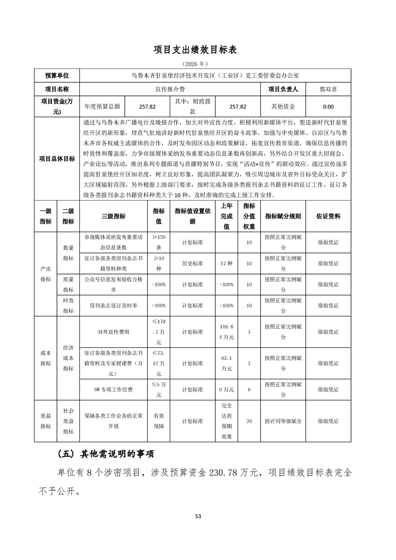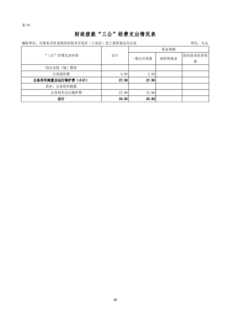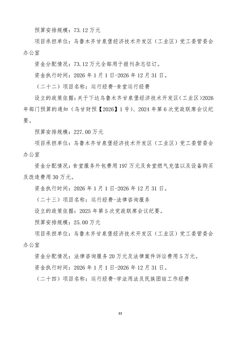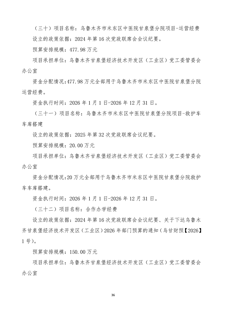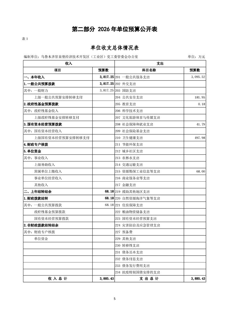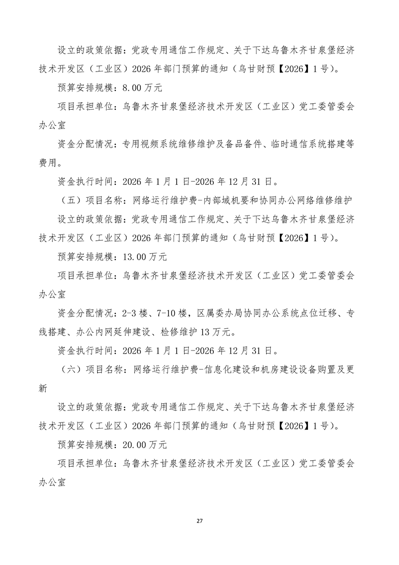 乌鲁木齐甘泉堡经济技术开发区(工业区)党工委管委会办公室2026年单位预算公开