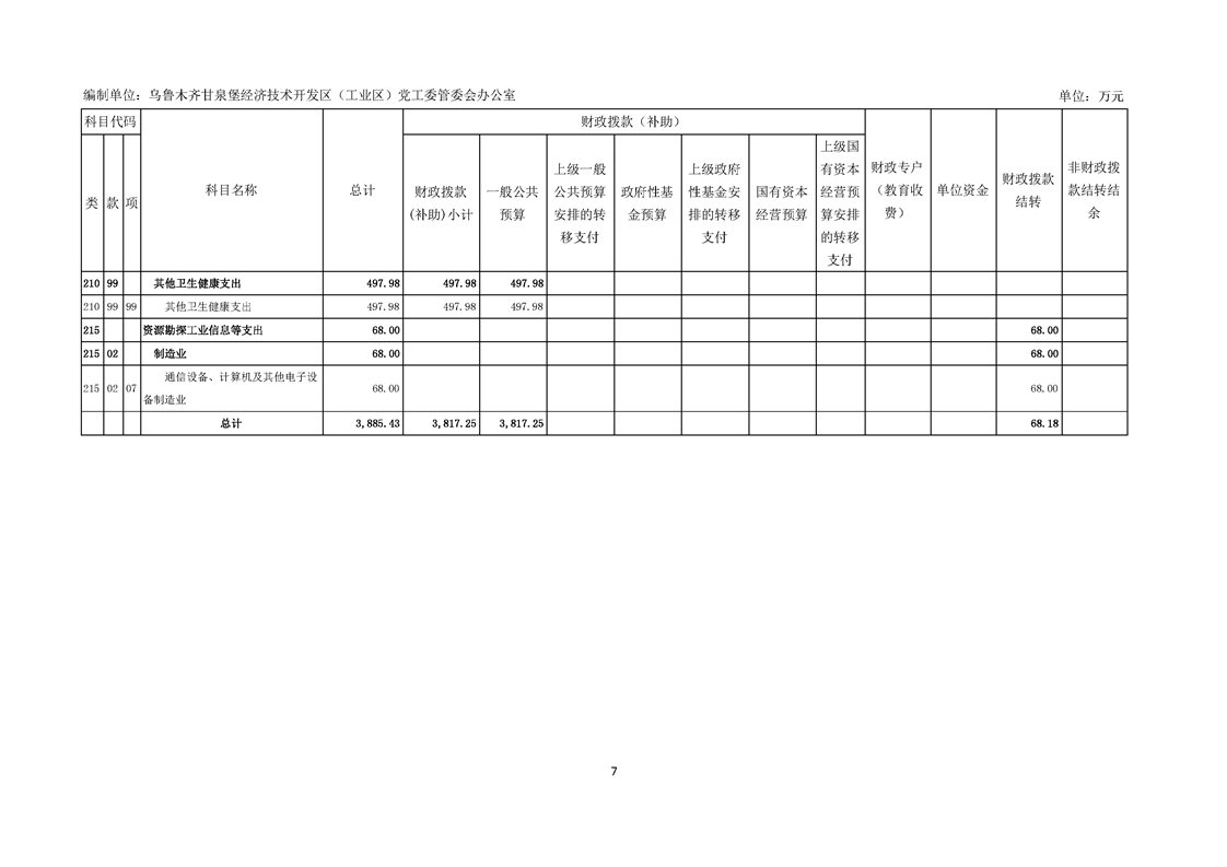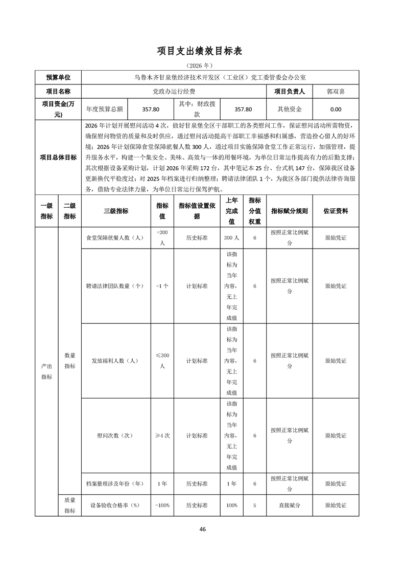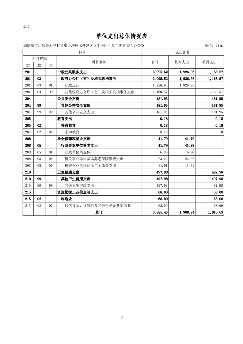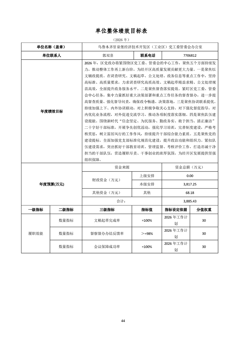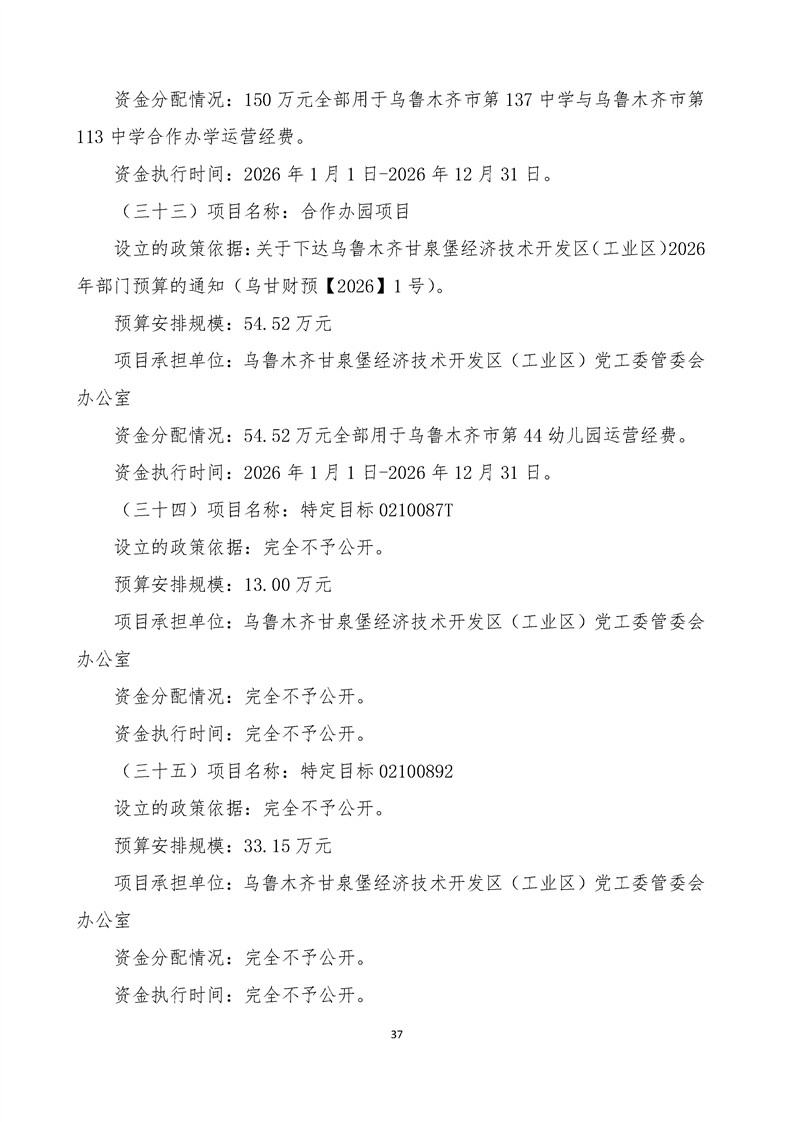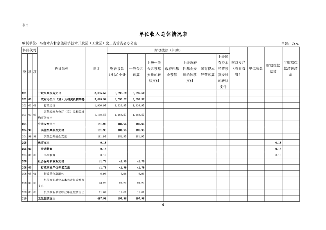 乌鲁木齐甘泉堡经济技术开发区(工业区)党工委管委会办公室2026年单位预算公开