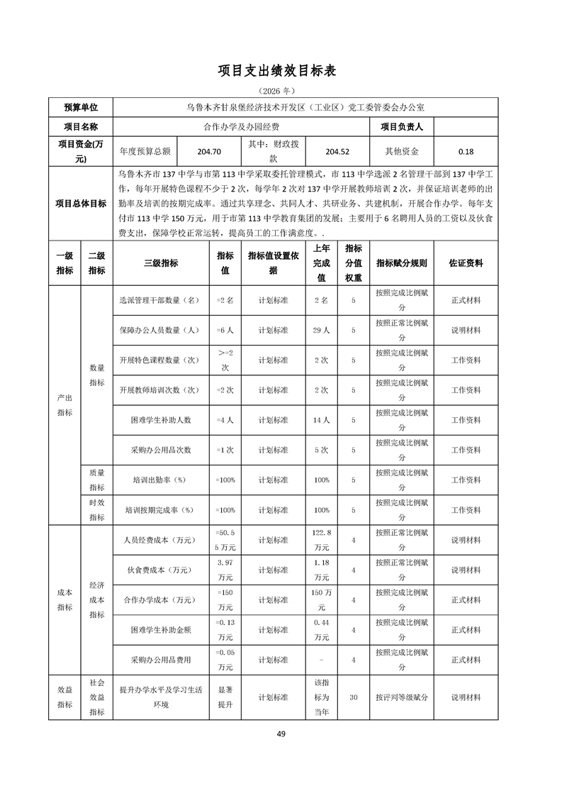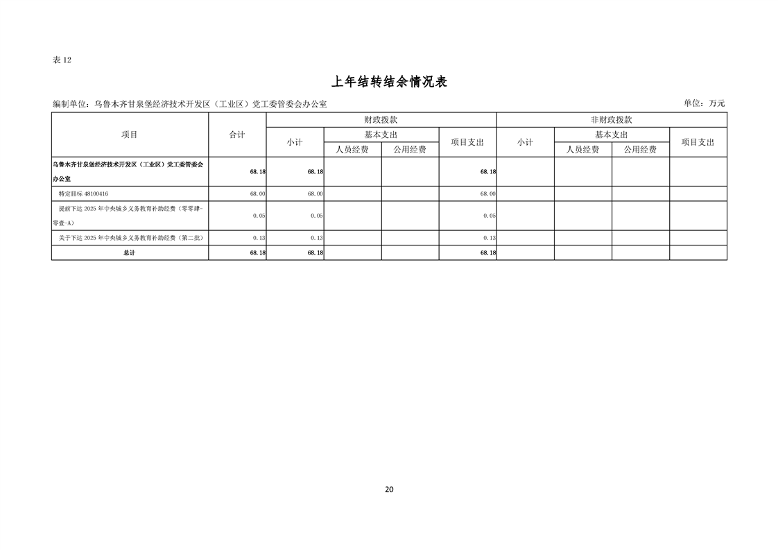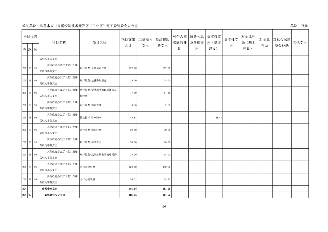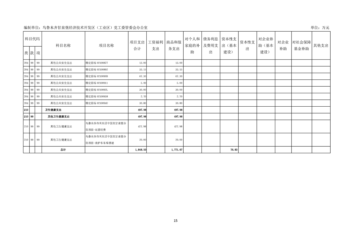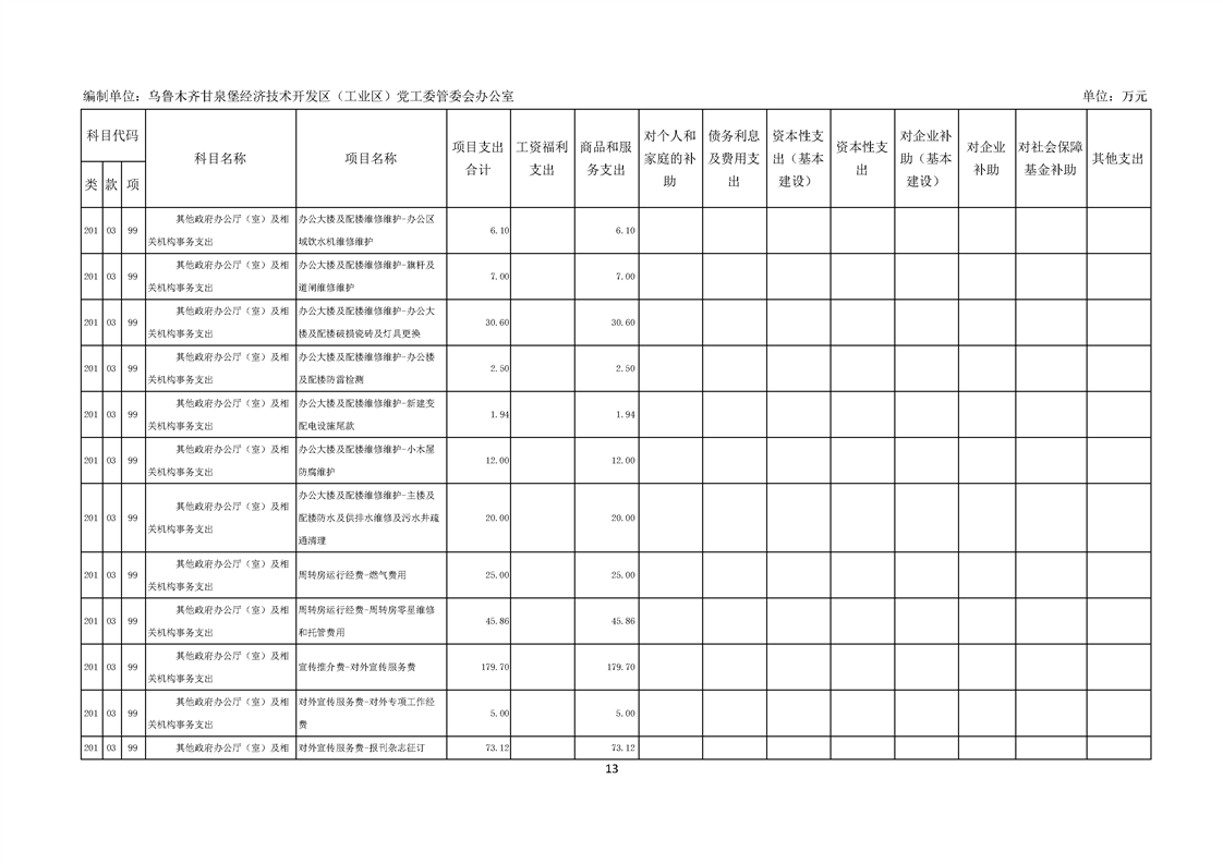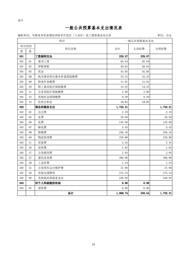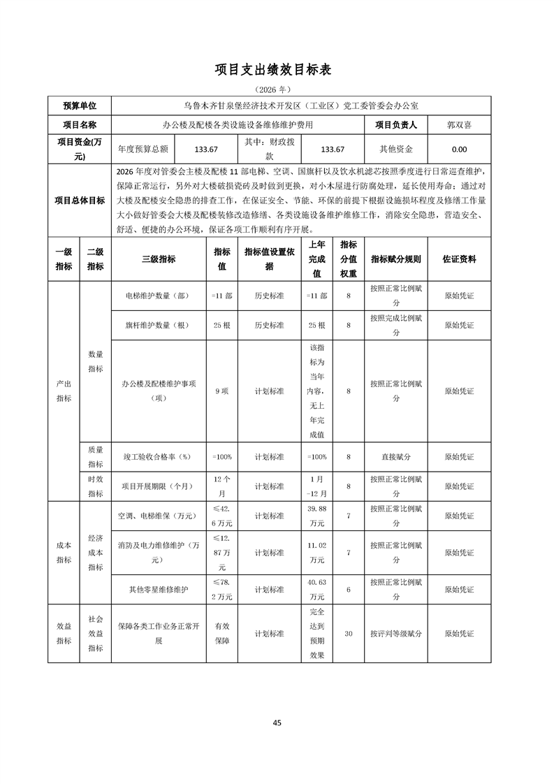 乌鲁木齐甘泉堡经济技术开发区(工业区)党工委管委会办公室2026年单位预算公开