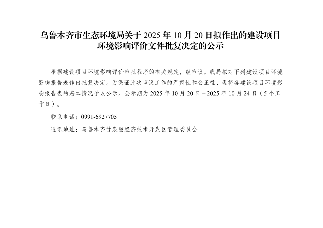 承办:乌鲁木齐甘泉堡经济技术开发区(工业区)党工委管委会办公室